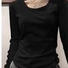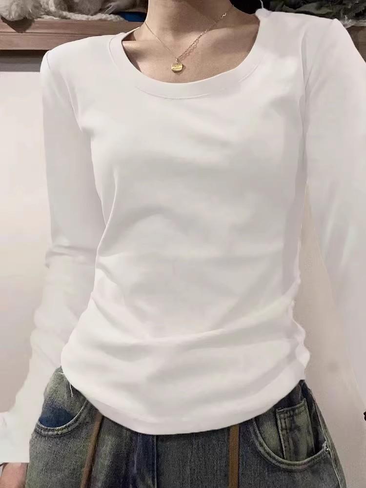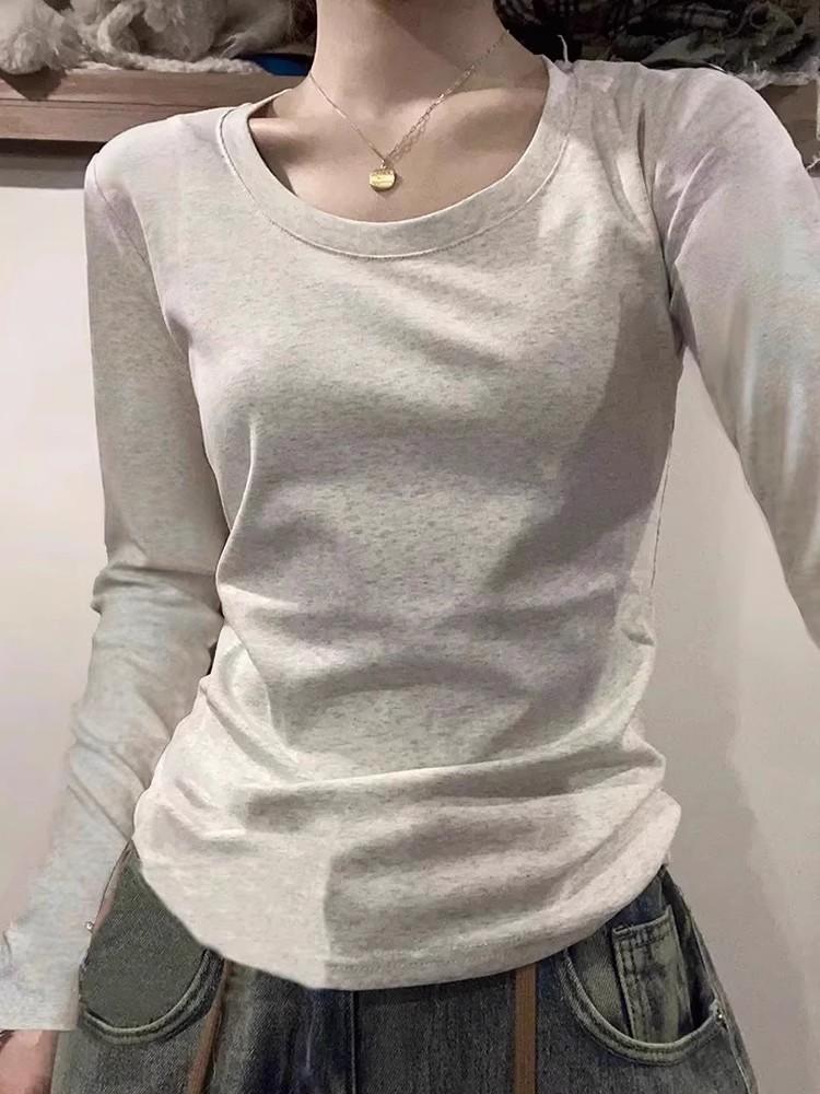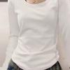 Camiseta feminina de manga comprida com ombro de fora, outono e inverno 2025, nova camisa branca com gola redonda, slim fit, top de algodão slim fit