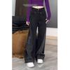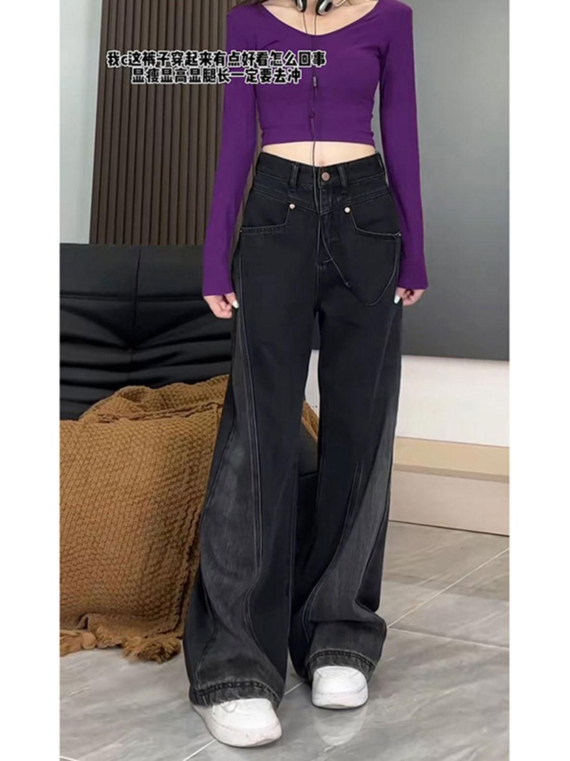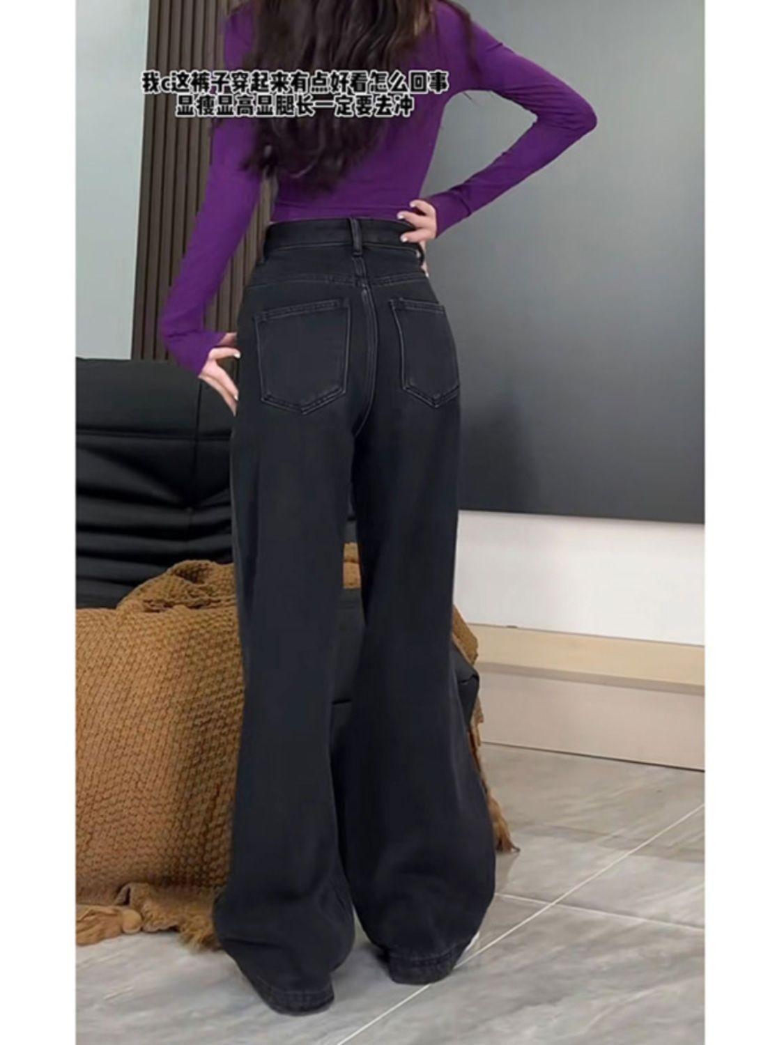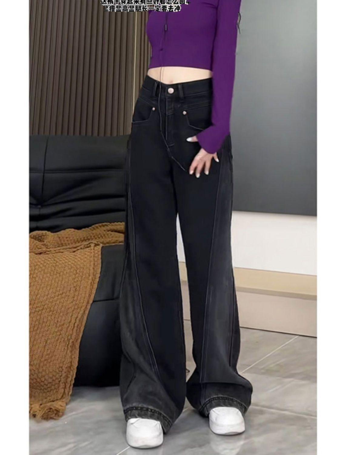 Calça jeans feminina cintura alta perna larga costura vintage lavada antiga 2025 nova calça reta solta e emagrecedora