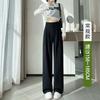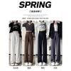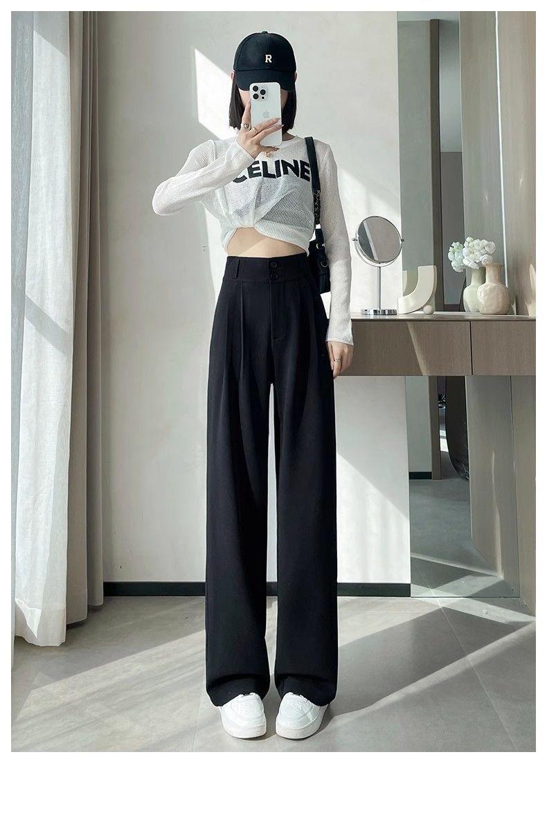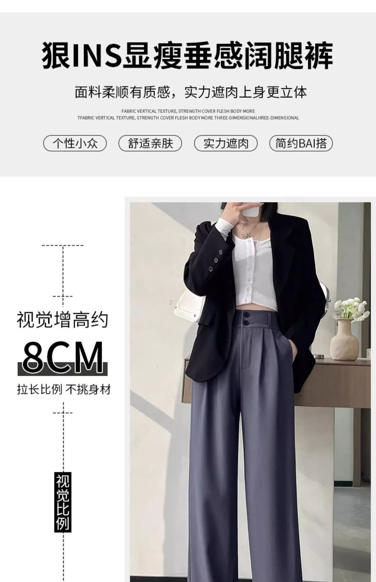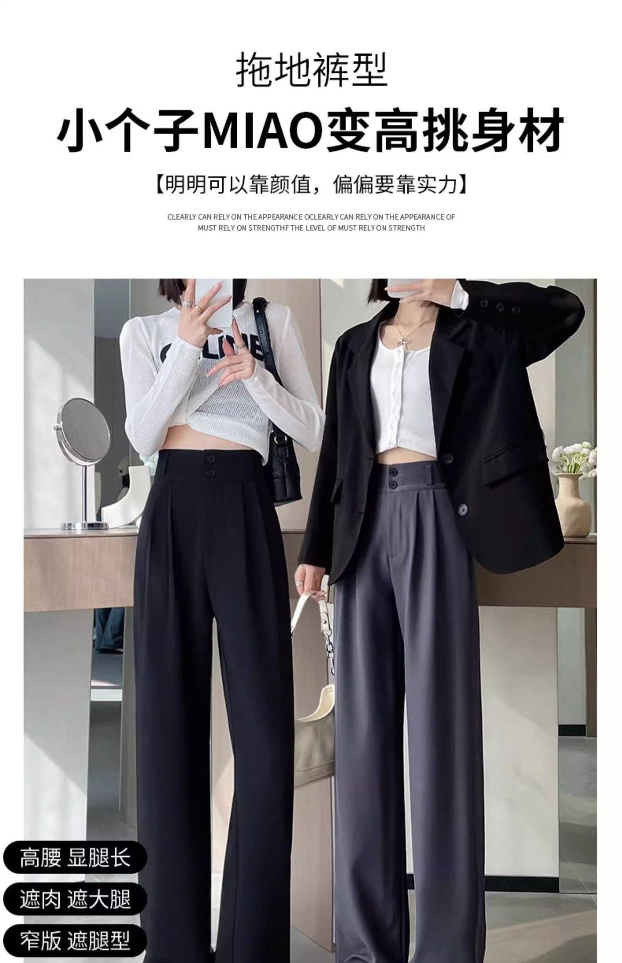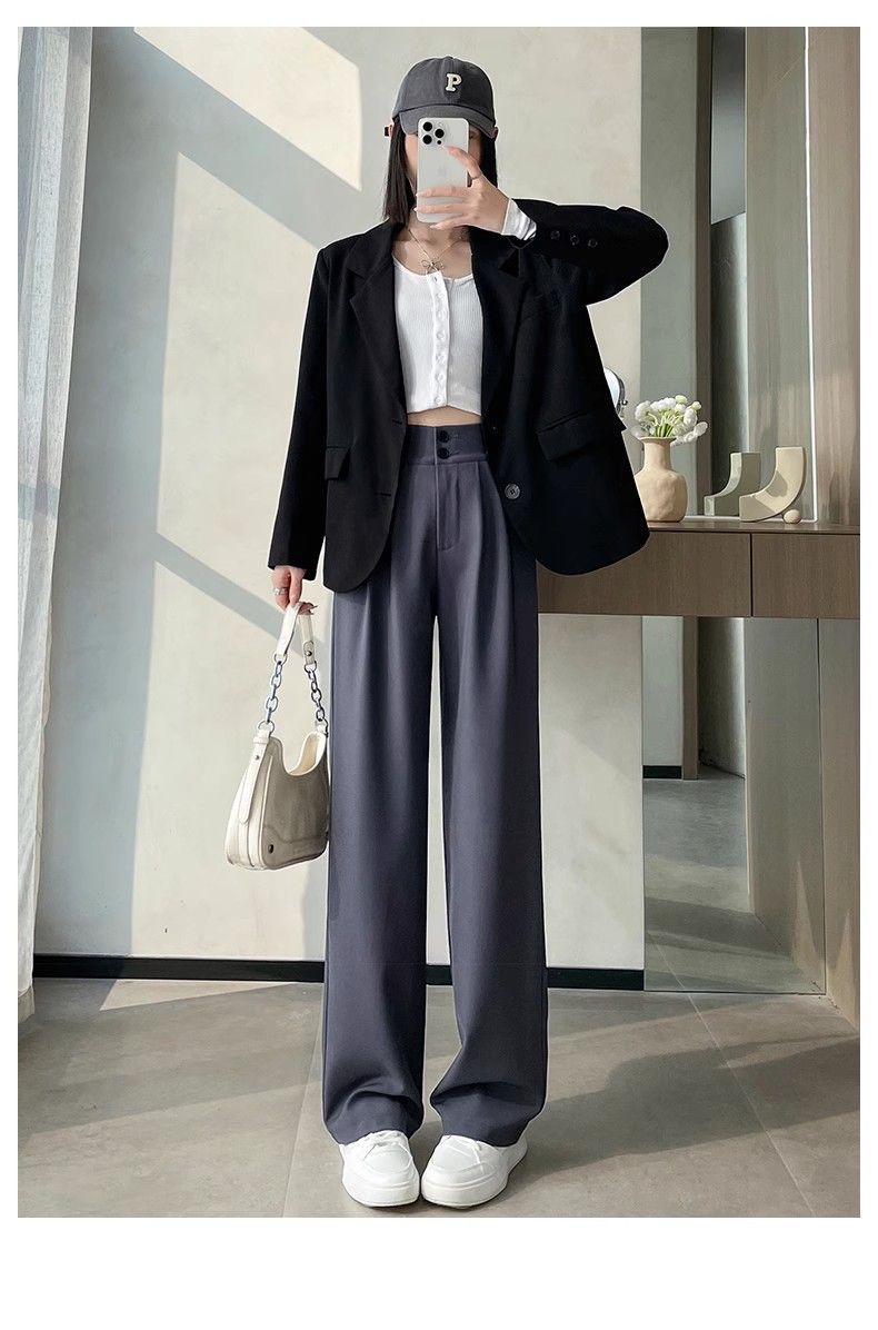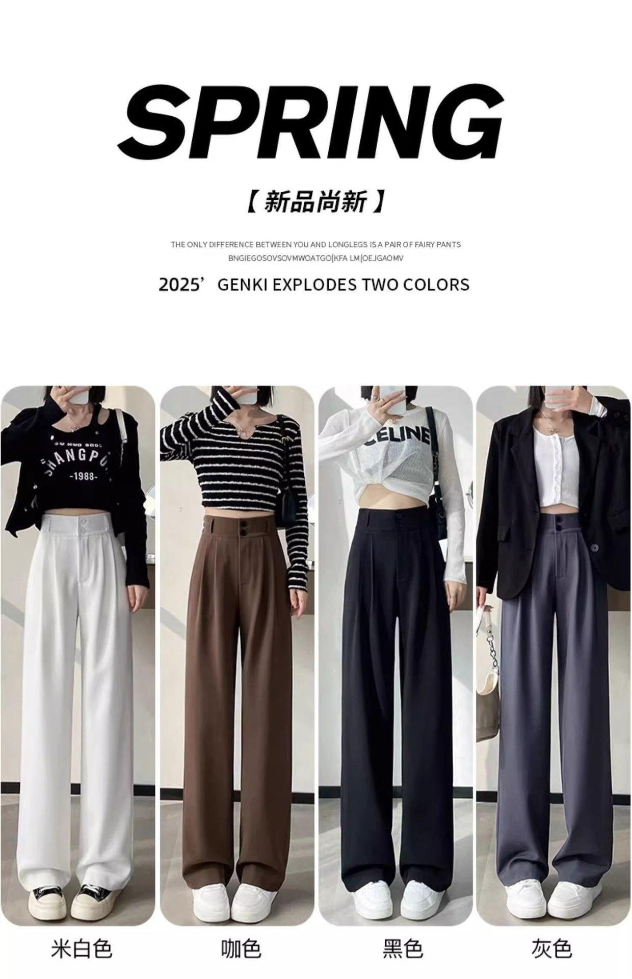 Calças de Perna Larga Novas de Primavera 2025 Cinza Calças de Alfaiataria de Alta Qualidade Femininas Femininas Cintura Alta Folgadas Pequenas Retas