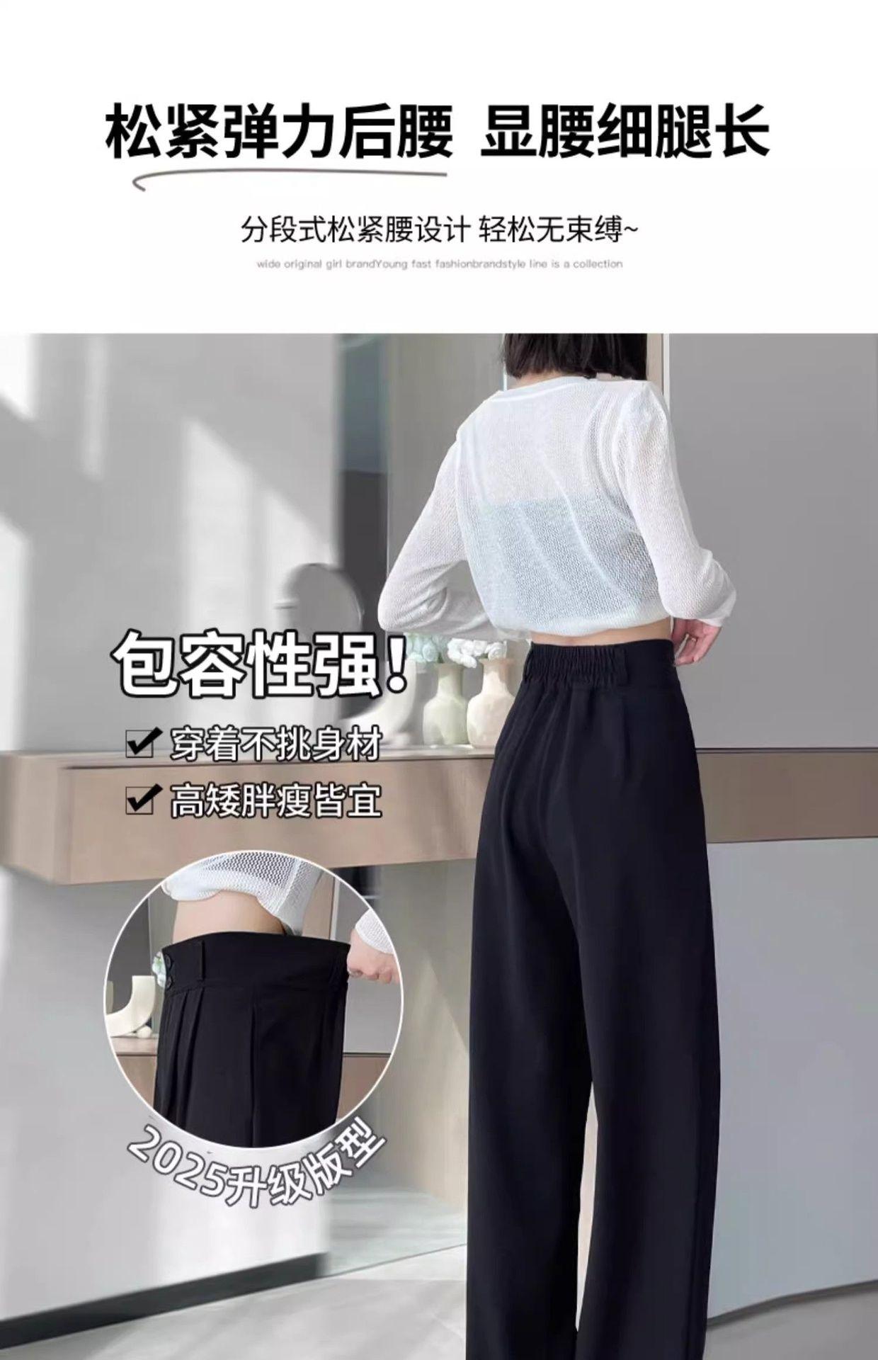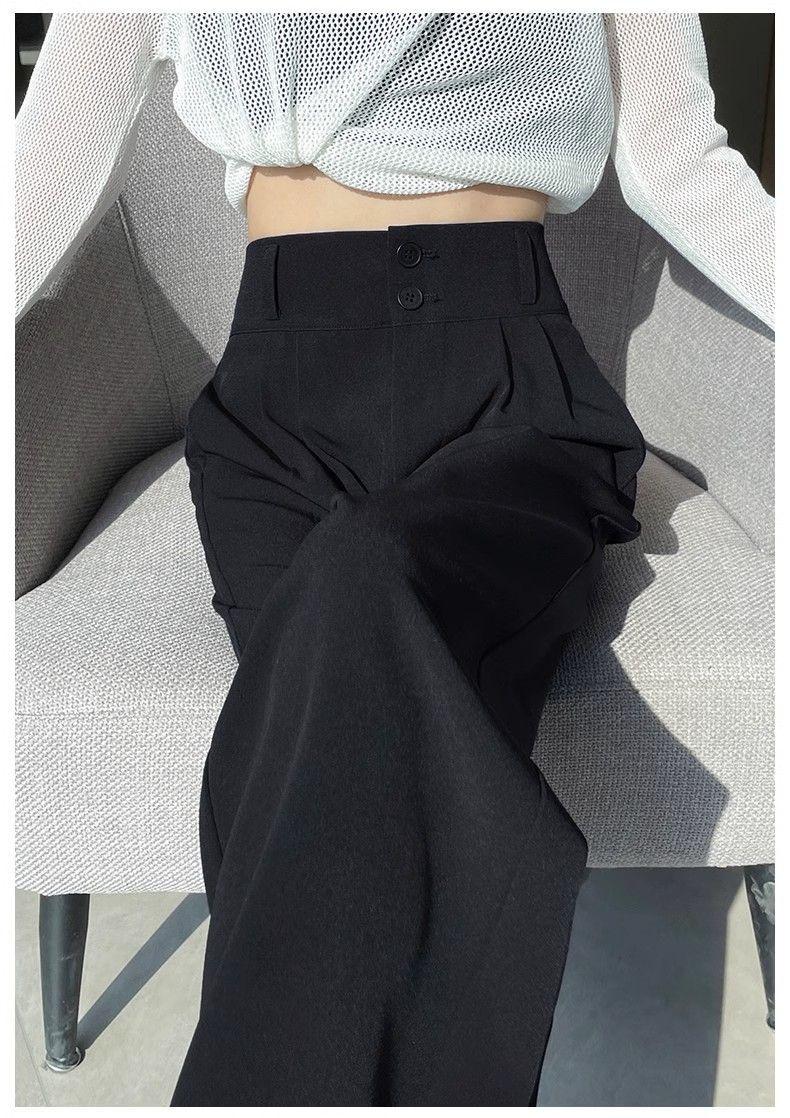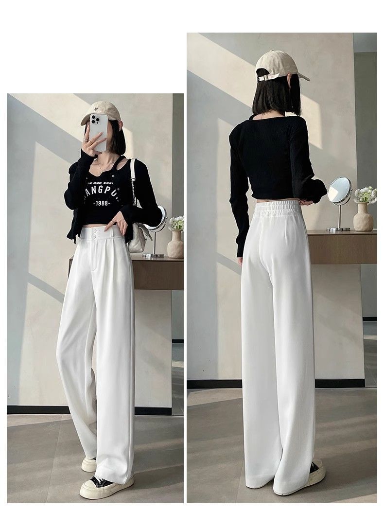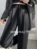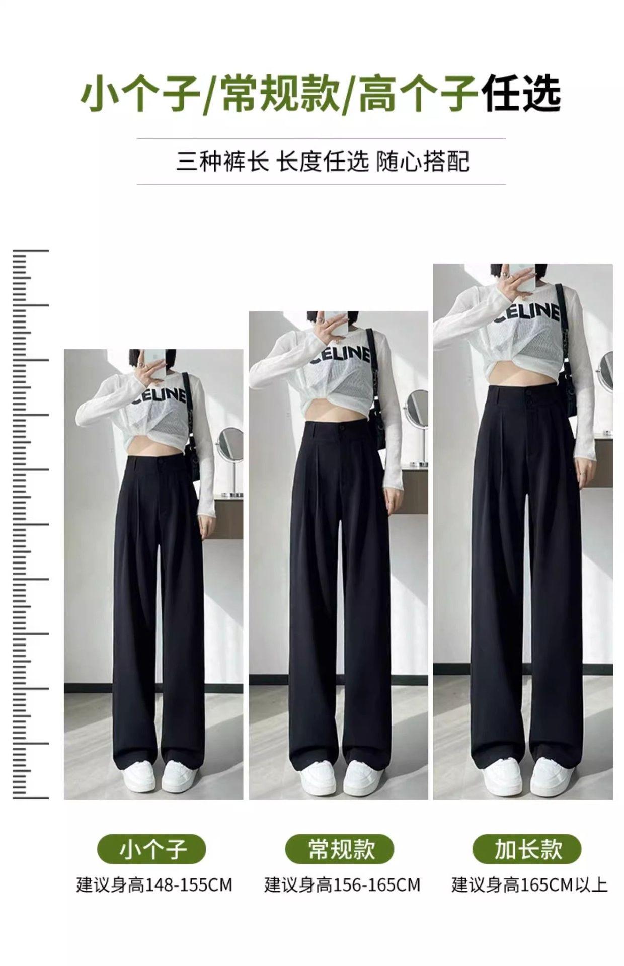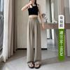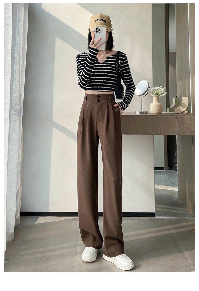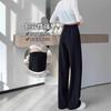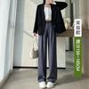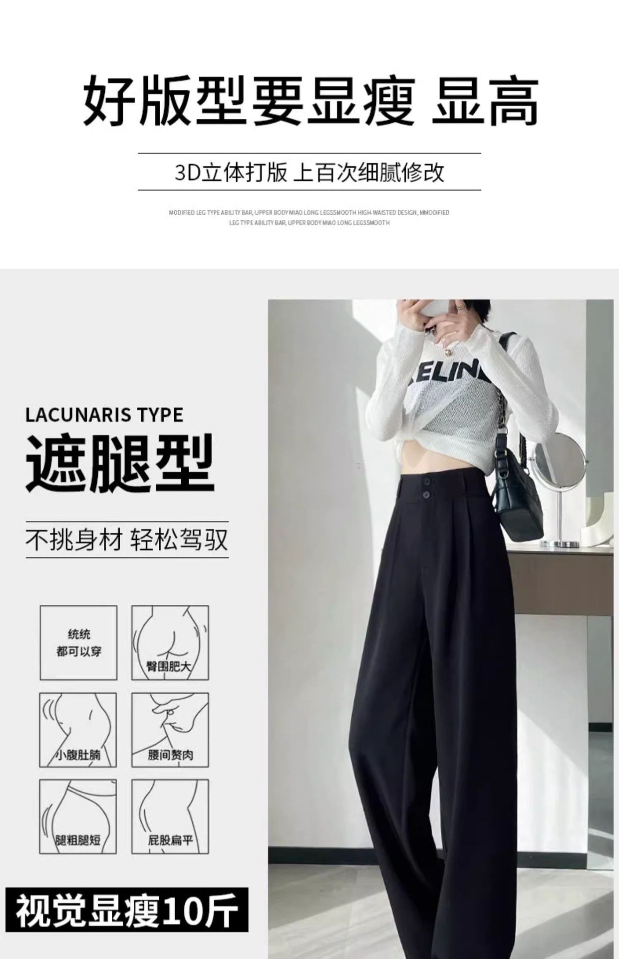 Calças de Perna Larga Novas de Primavera 2025 Cinza Calças de Alfaiataria de Alta Qualidade Femininas Femininas Cintura Alta Folgadas Pequenas Retas