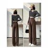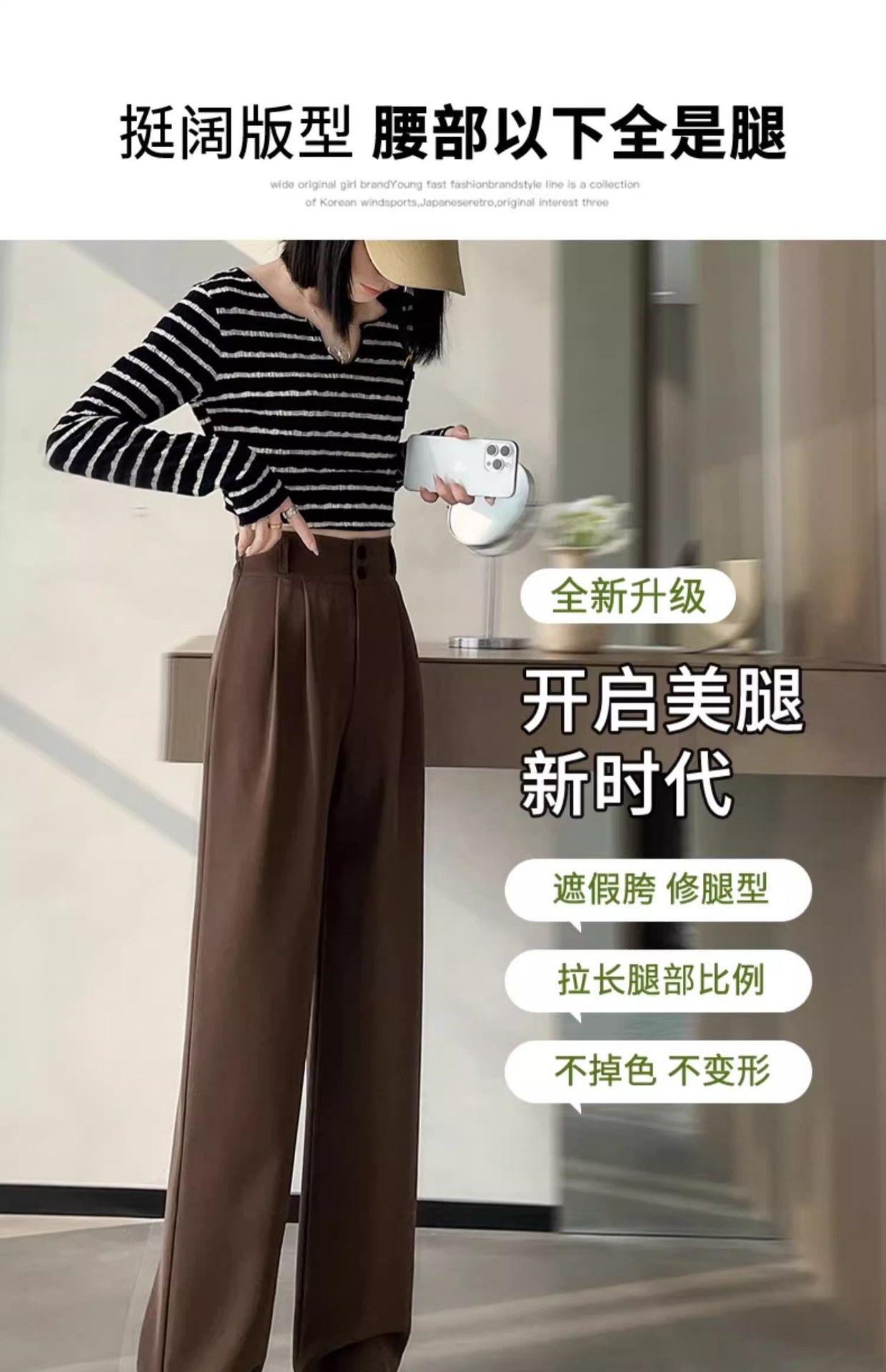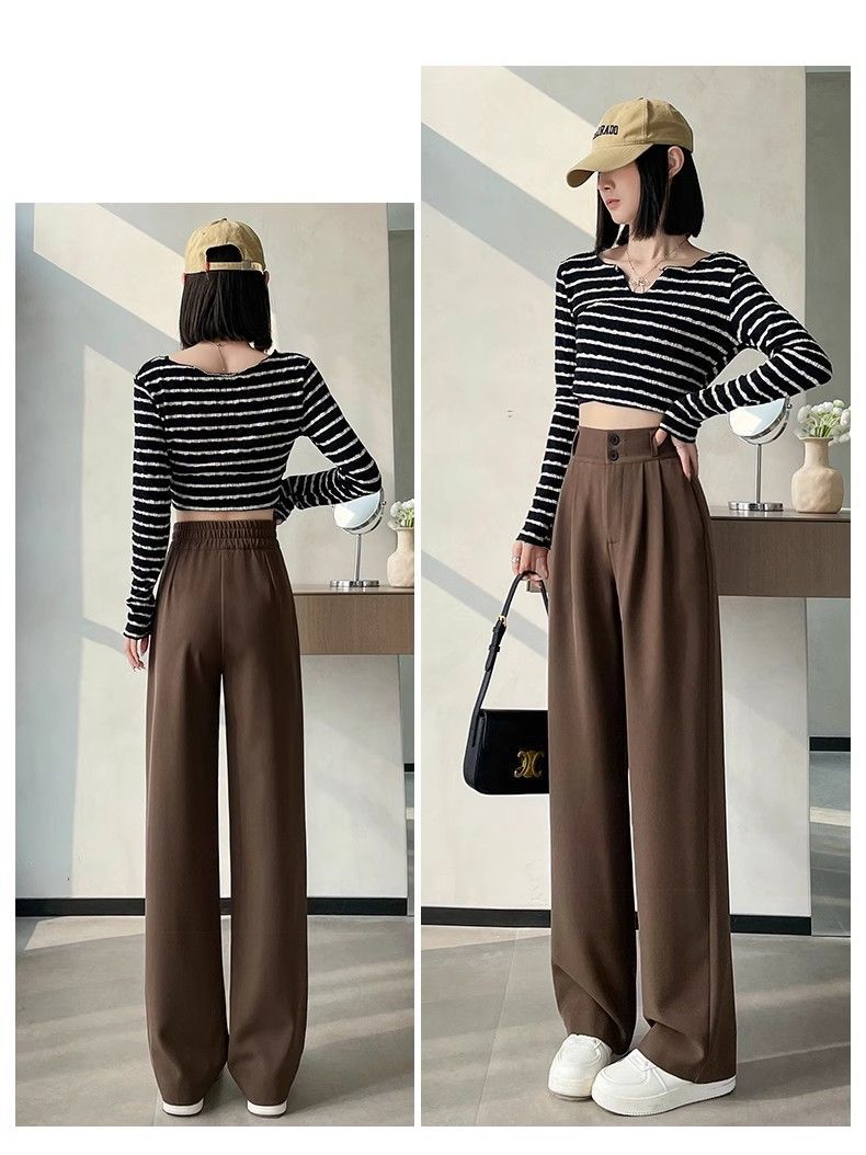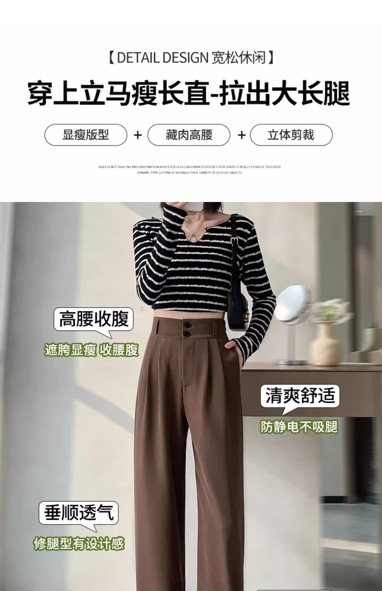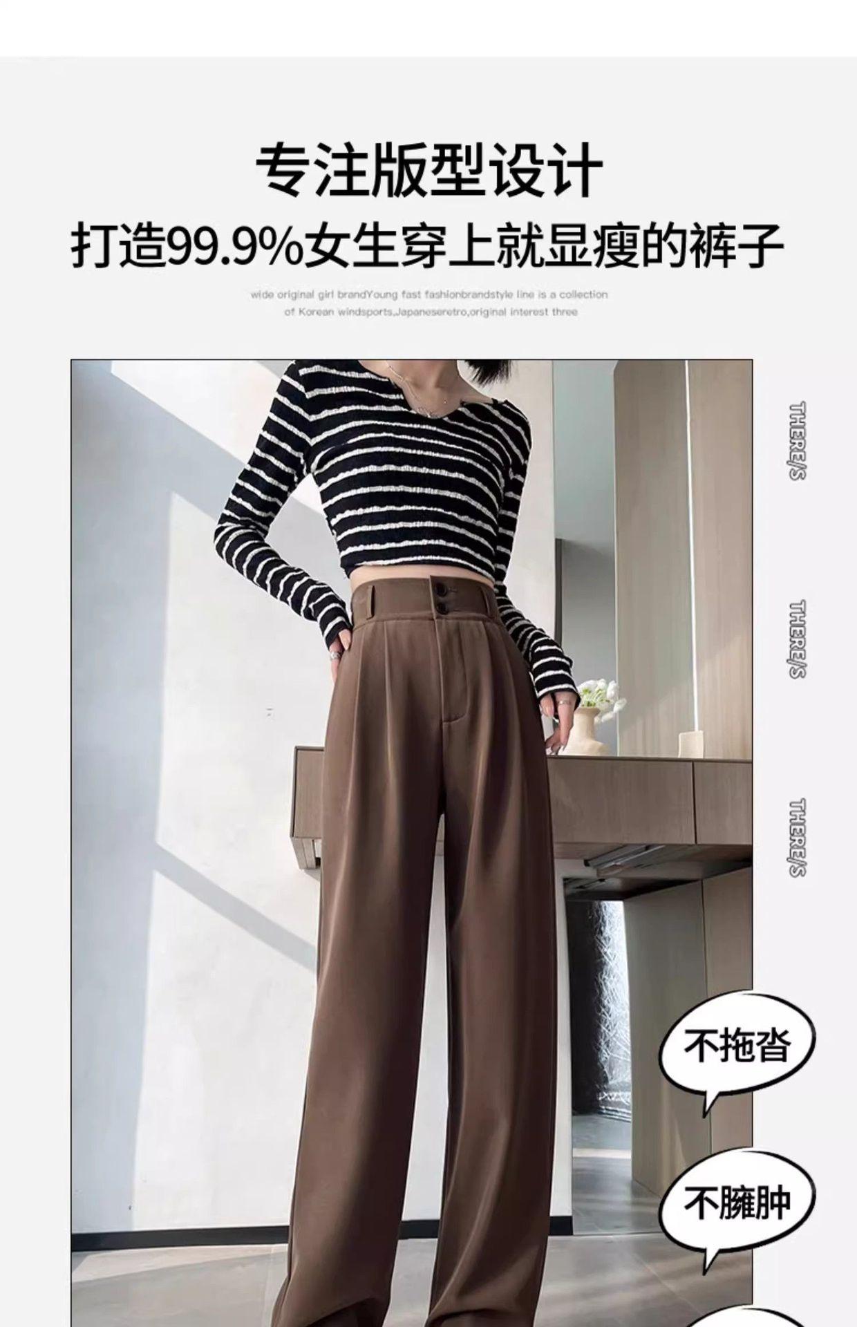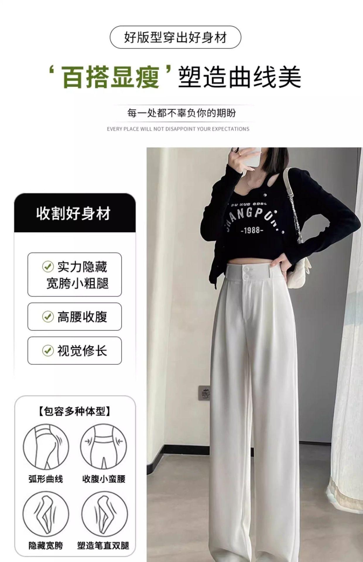 Calças de Perna Larga Novas de Primavera 2025 Cinza Calças de Alfaiataria de Alta Qualidade Femininas Femininas Cintura Alta Folgadas Pequenas Retas