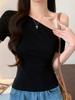 Camiseta Branca de Manga Curta para Mulheres Baixas com Design de Um Ombro, Novo Estilo de Design de Nicho de Verão 2026, Top Tendência de Ombro a Ombro