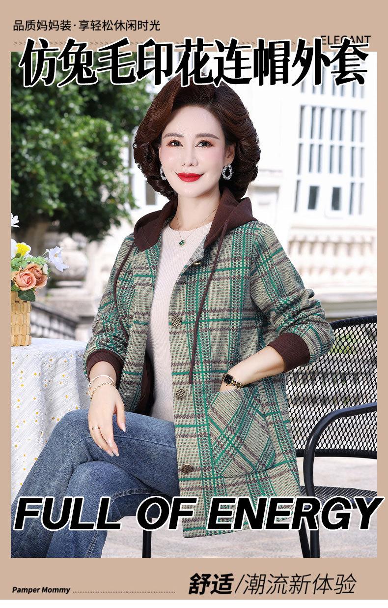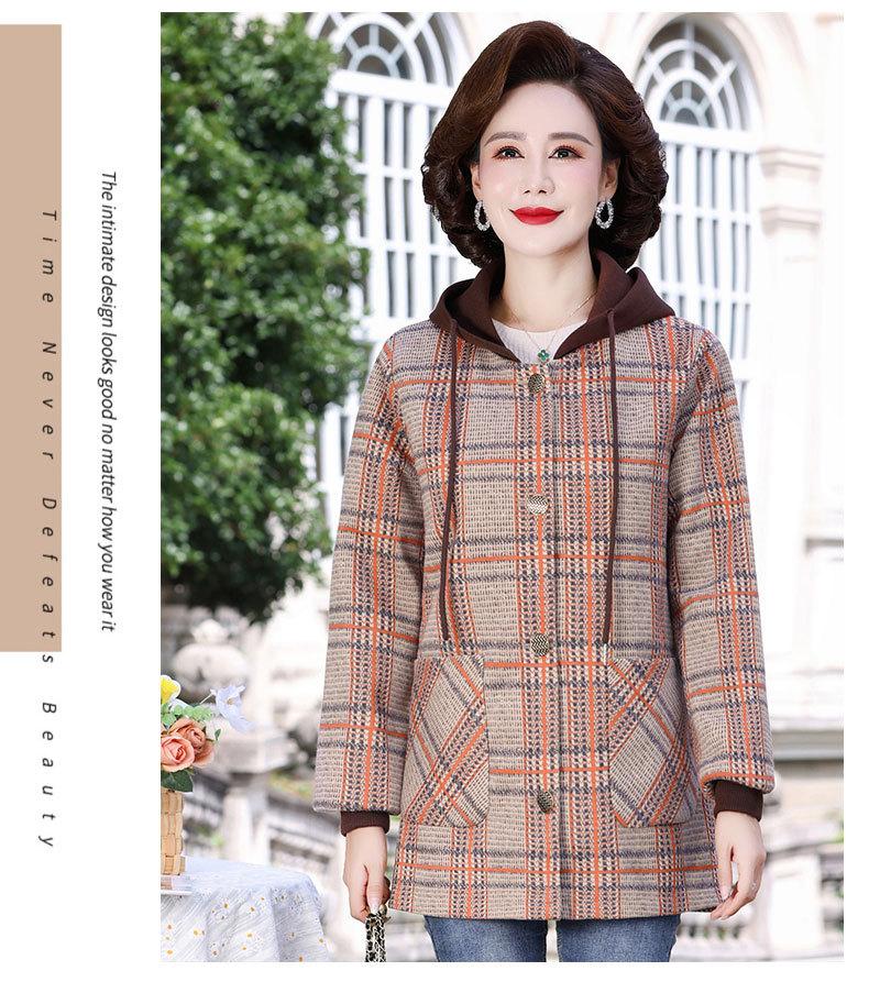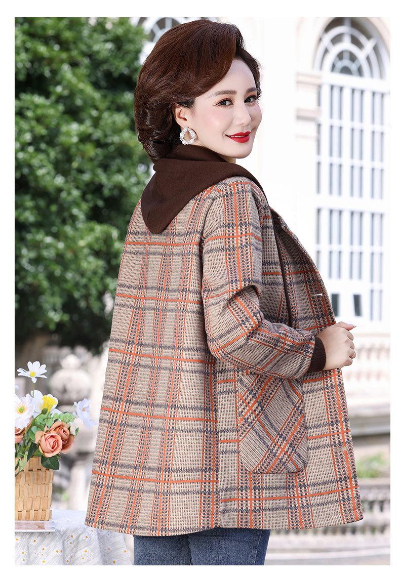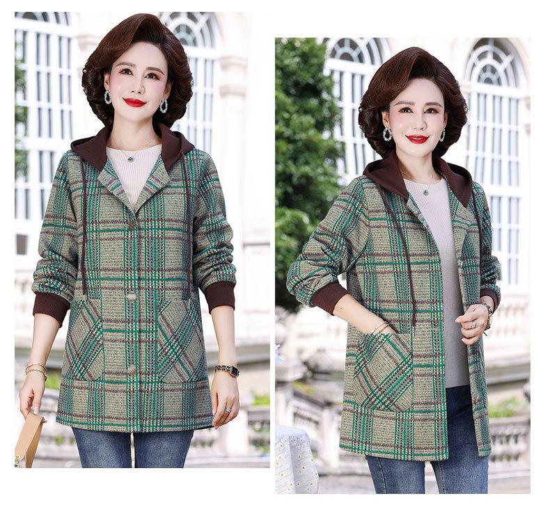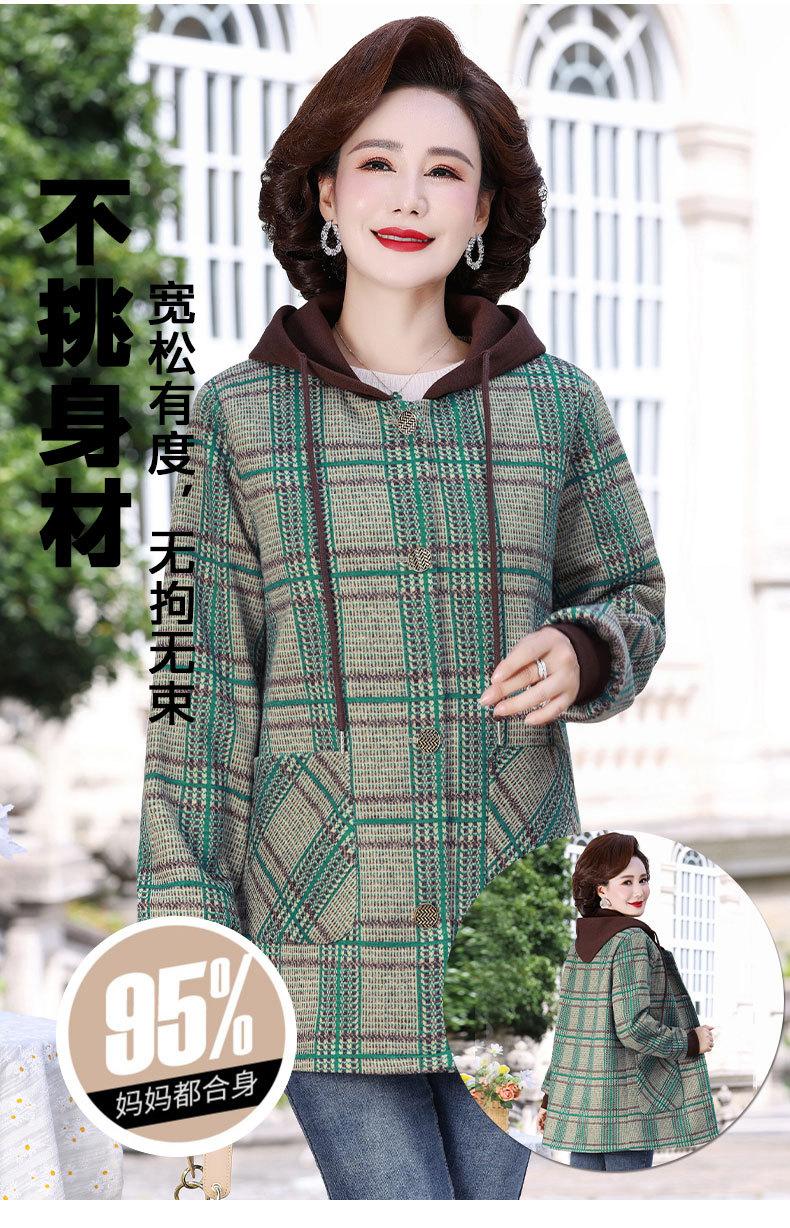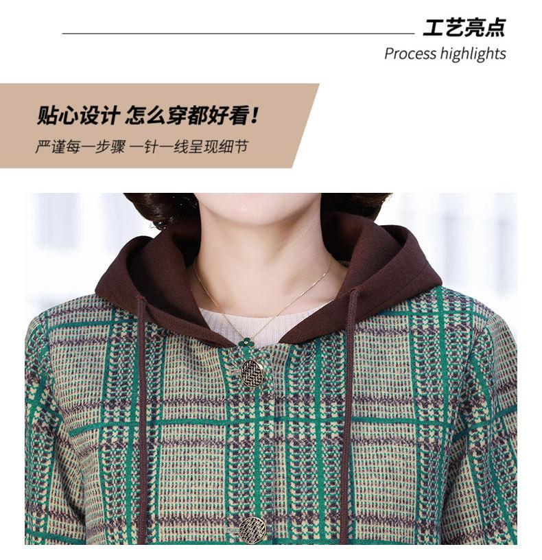 Roupas de Outono Novas para Mães de Meia-Idade, Roupas Femininas da Moda de Comprimento Médio, Jaqueta Xadrez com Capuz para Primavera e Outono