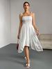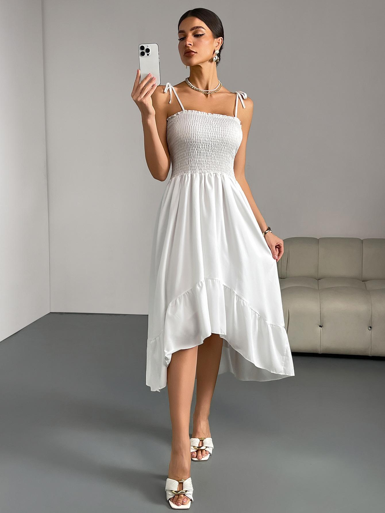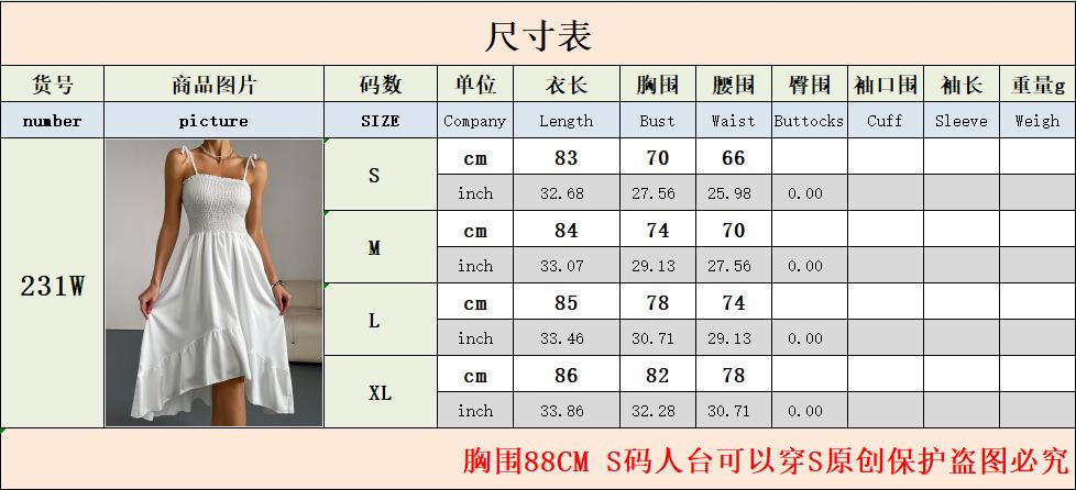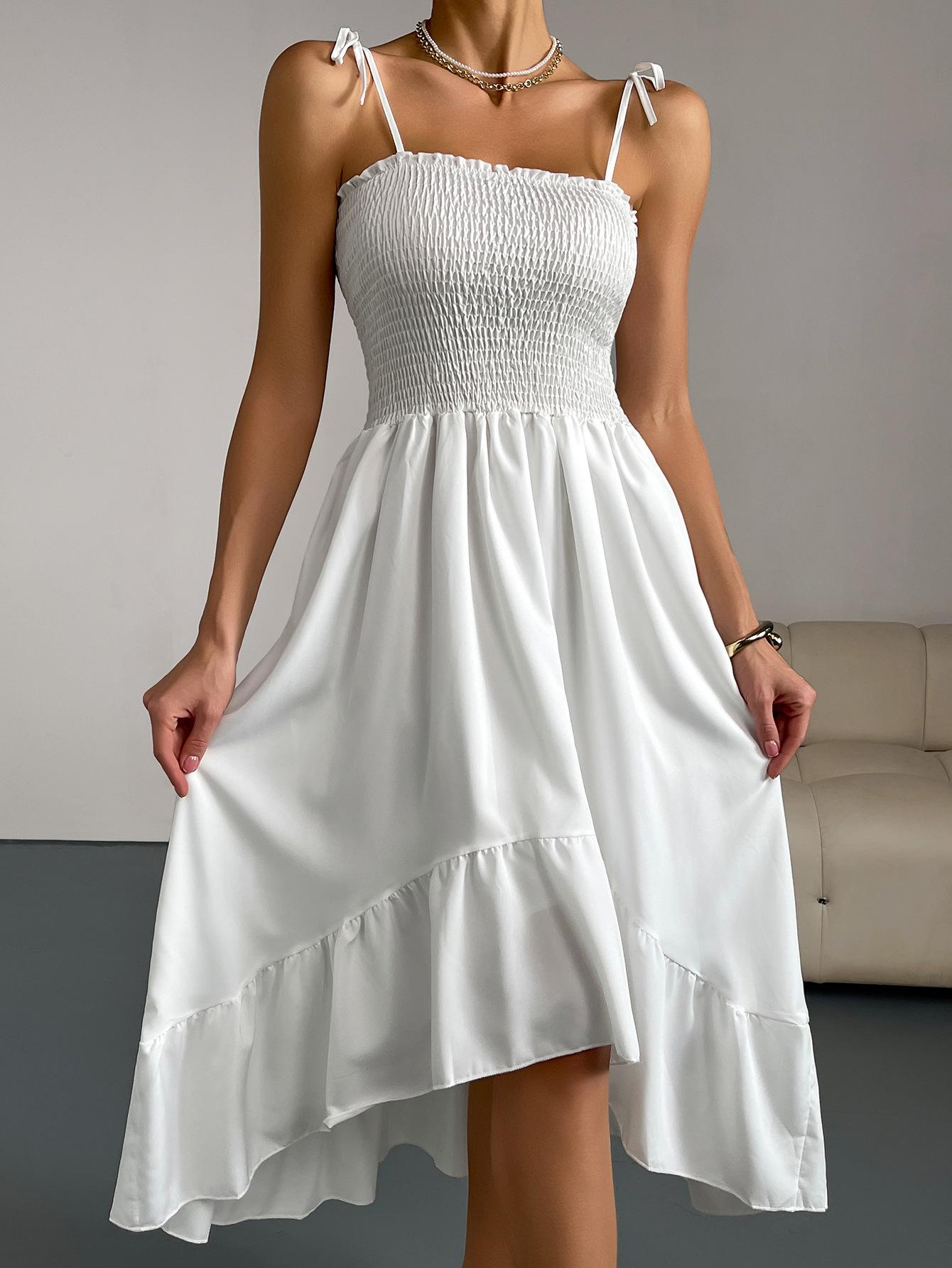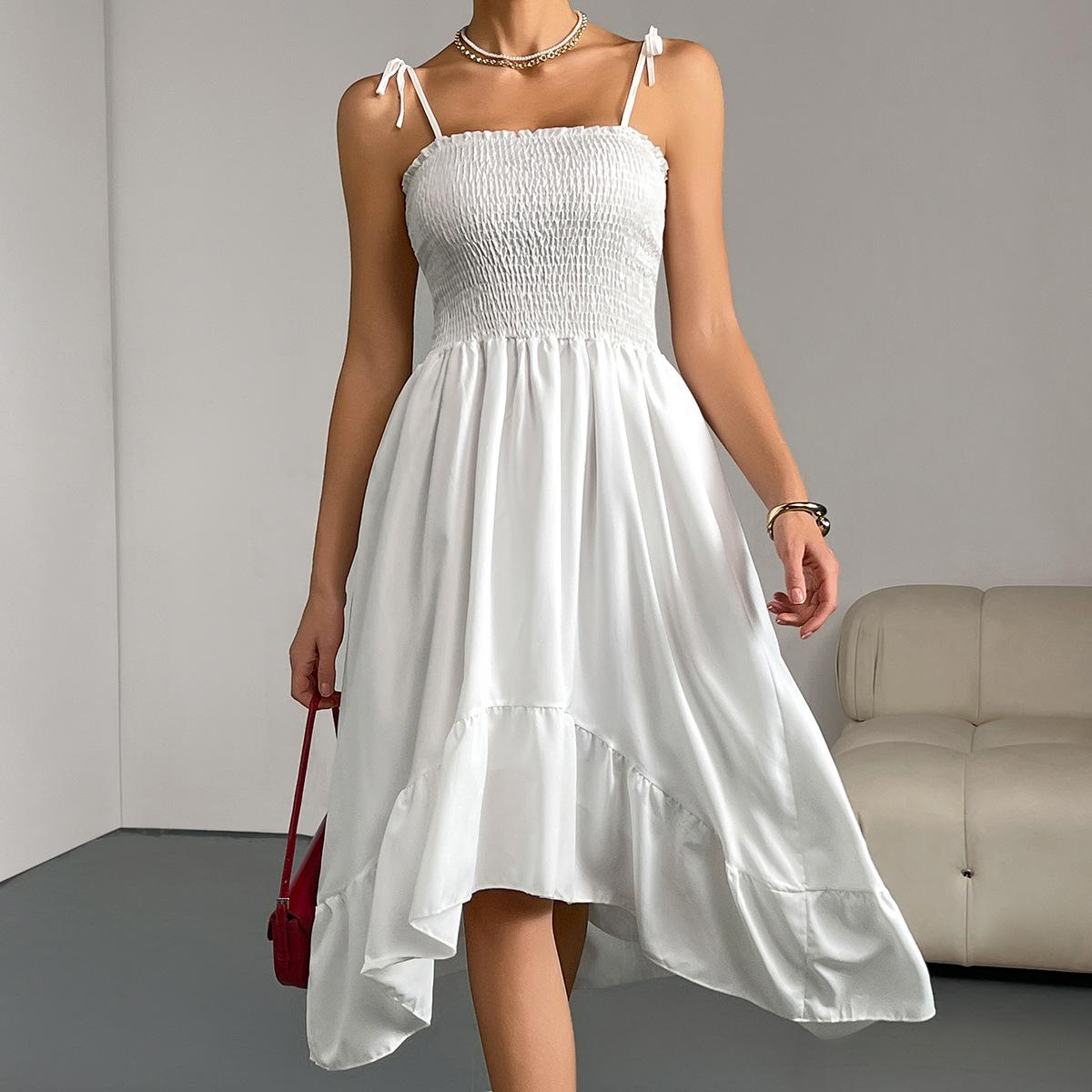 2025 Novo Verão Feminino Branco Suspensório Europeu e Americano Cor Sólida Sem Mangas Plissado Irregular Saia Longa Atacado