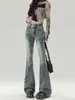 Jeans vintage de cintura alta micro-rabanete feminino 2025 primavera novo ajuste fino emagrecimento arco elástico ferradura calças largas