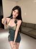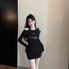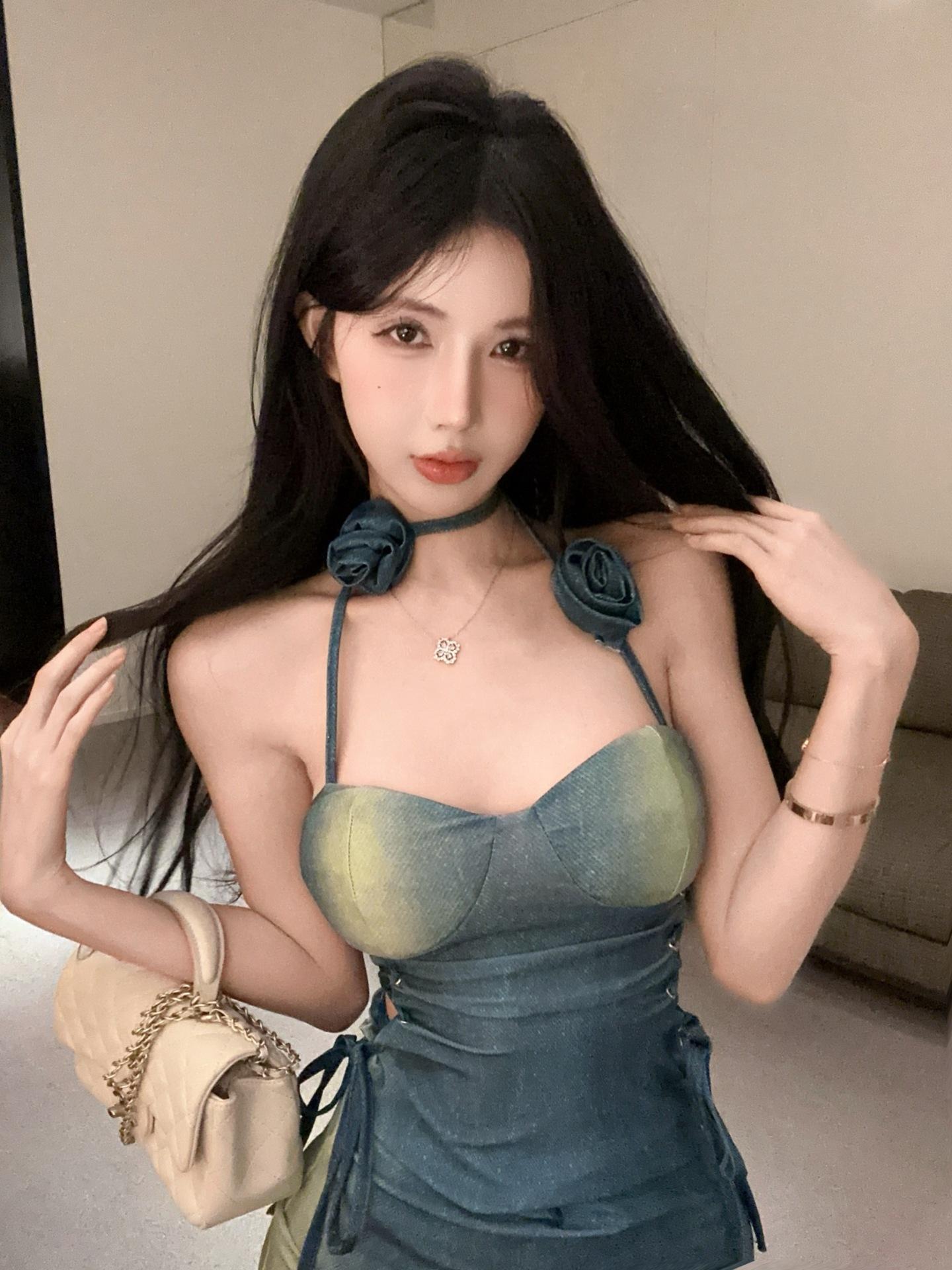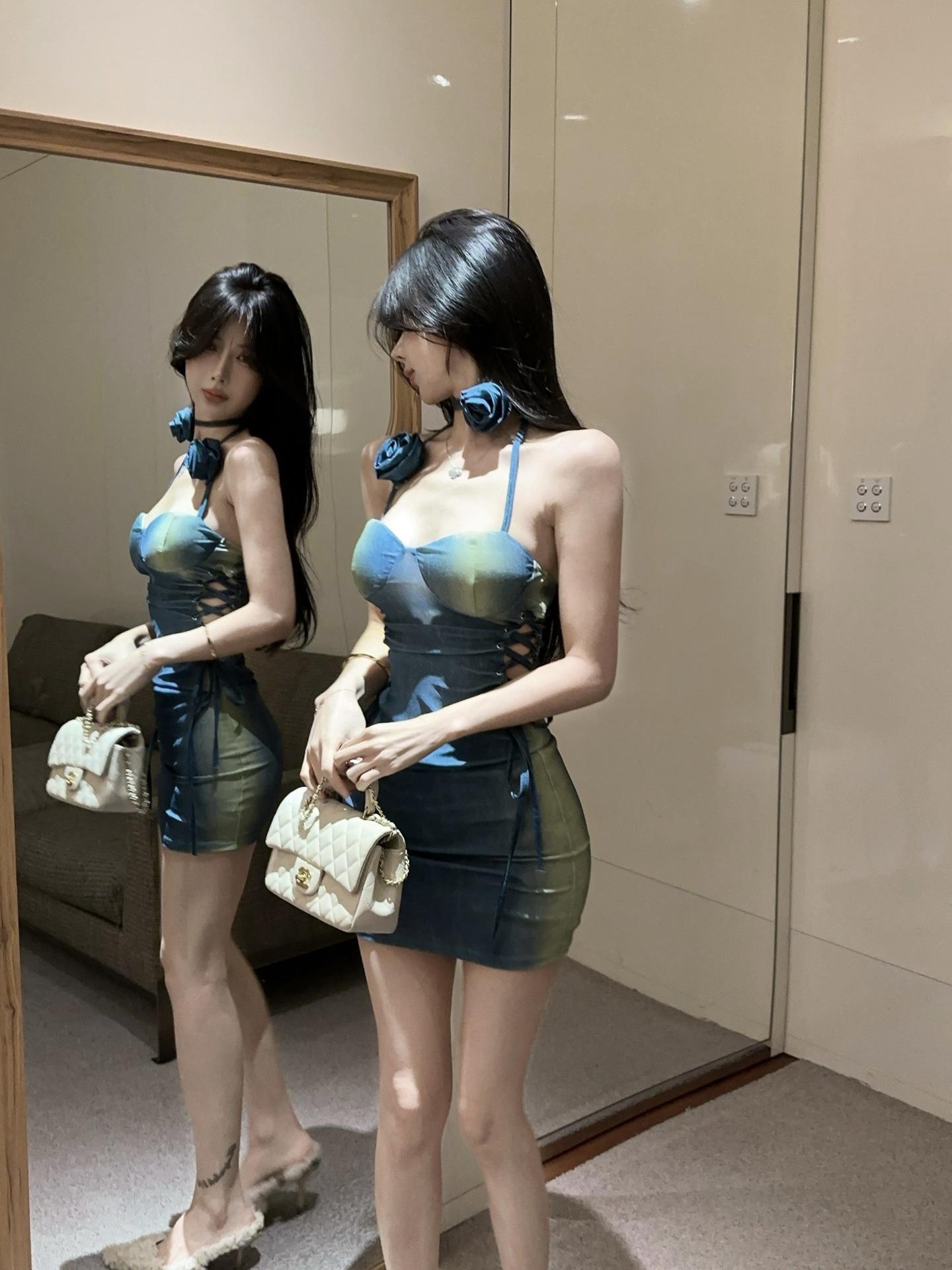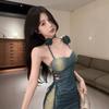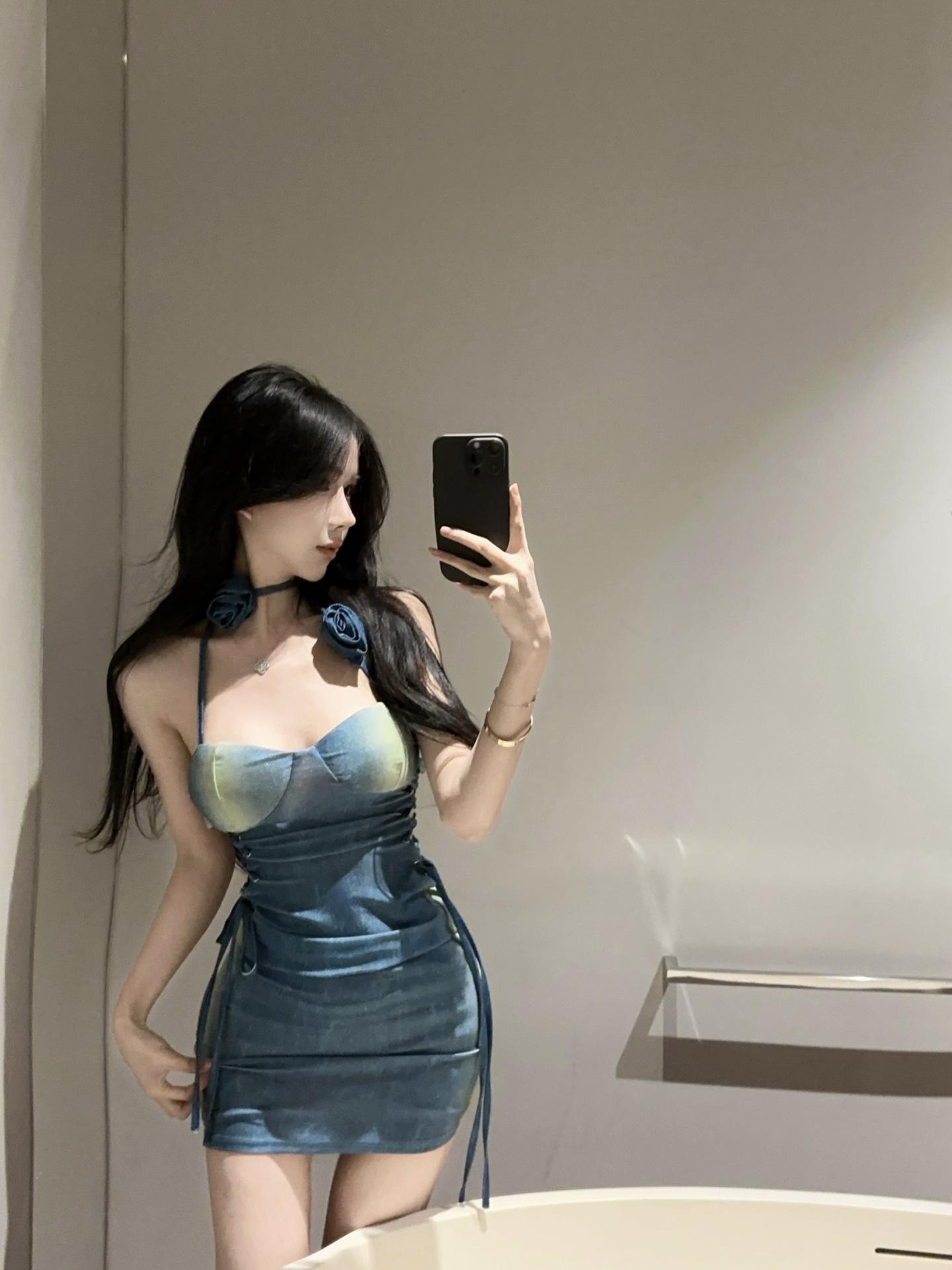 Design decorativo tridimensional, sentimento de temperamento, desejo puro, saia justa sem costas, decote floral, moda, vestido de menina quente