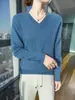 Camisa feminina de malha com decote em V, nova primavera e outono de 2025, pulôver curto, suéter de vison solto com interior