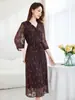 Vestido de seda Zhongda Shu Mom, vestido feminino de seda amoreira bordada de alta qualidade, elegante, slim fit, midi 8892