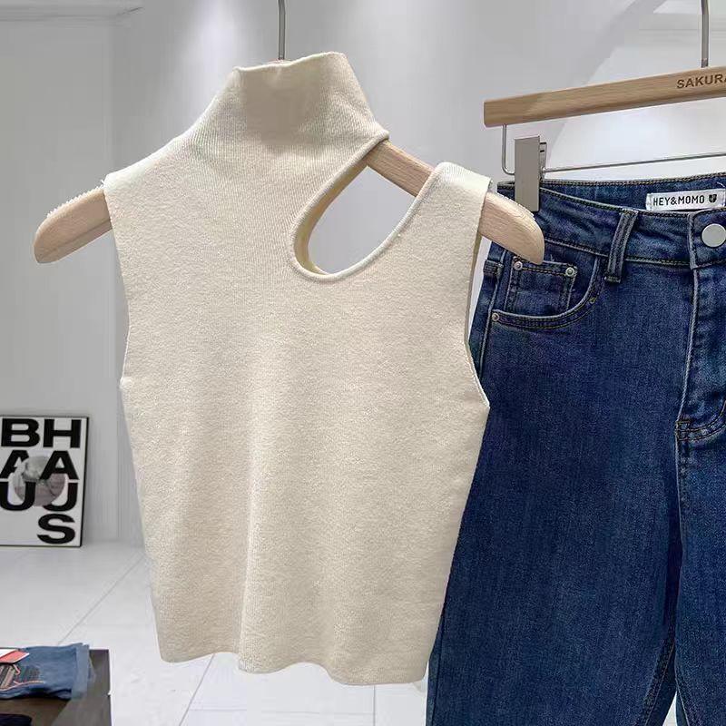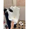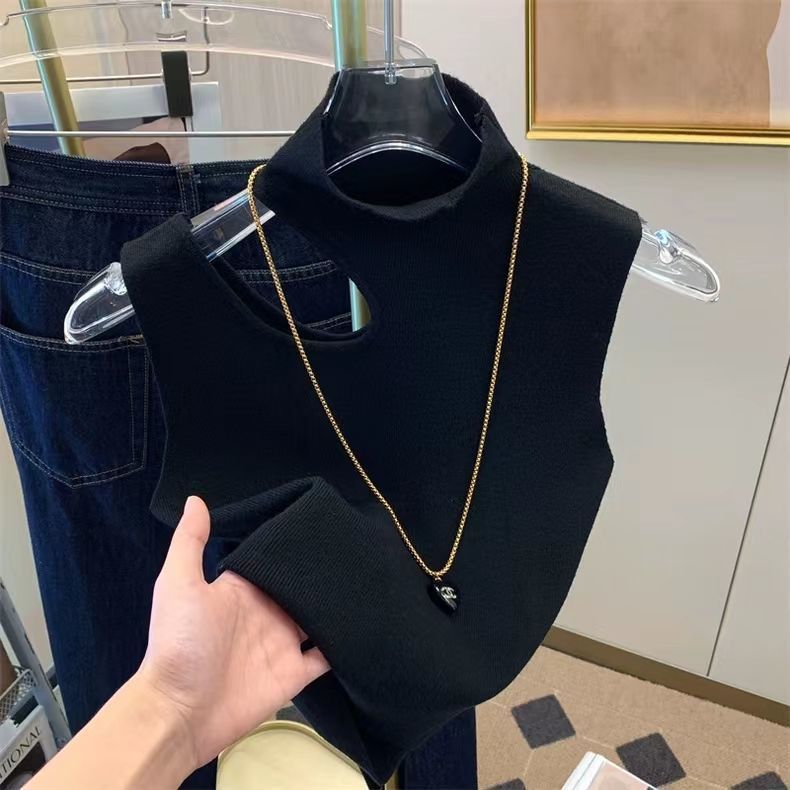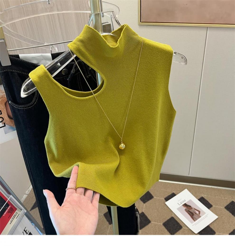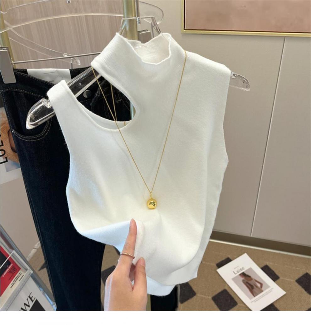 Tricô Sem Mangas Gola Alta Metade para Mulheres 2024 Novo Doce Ajuste Slim Versátil Estilo Estrangeiro Camiseta de Base para Mulheres