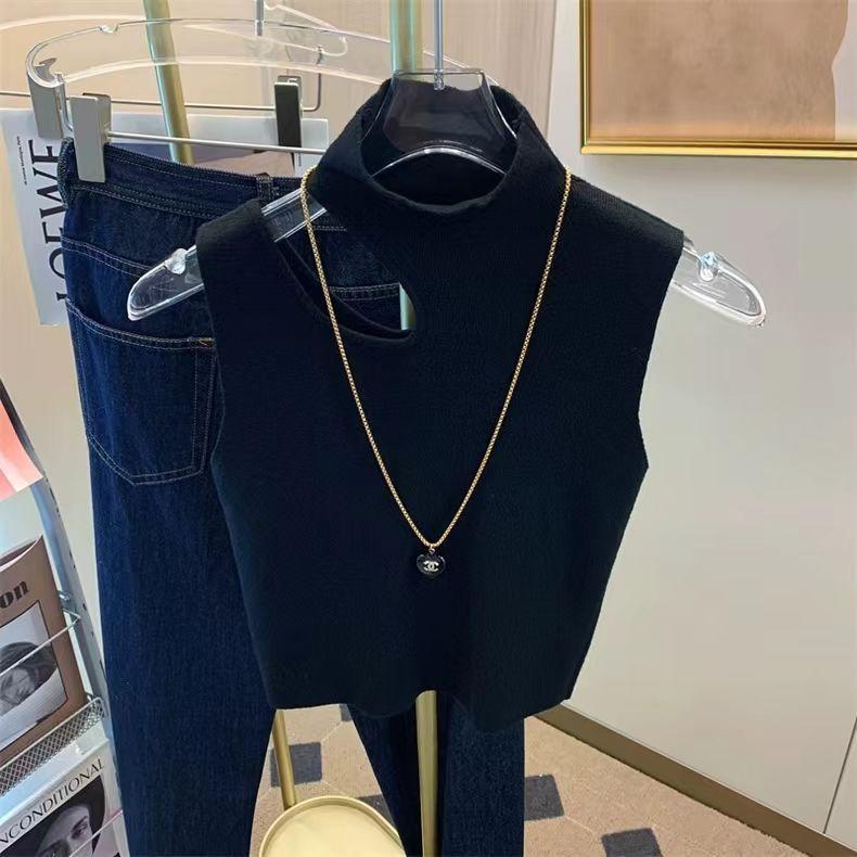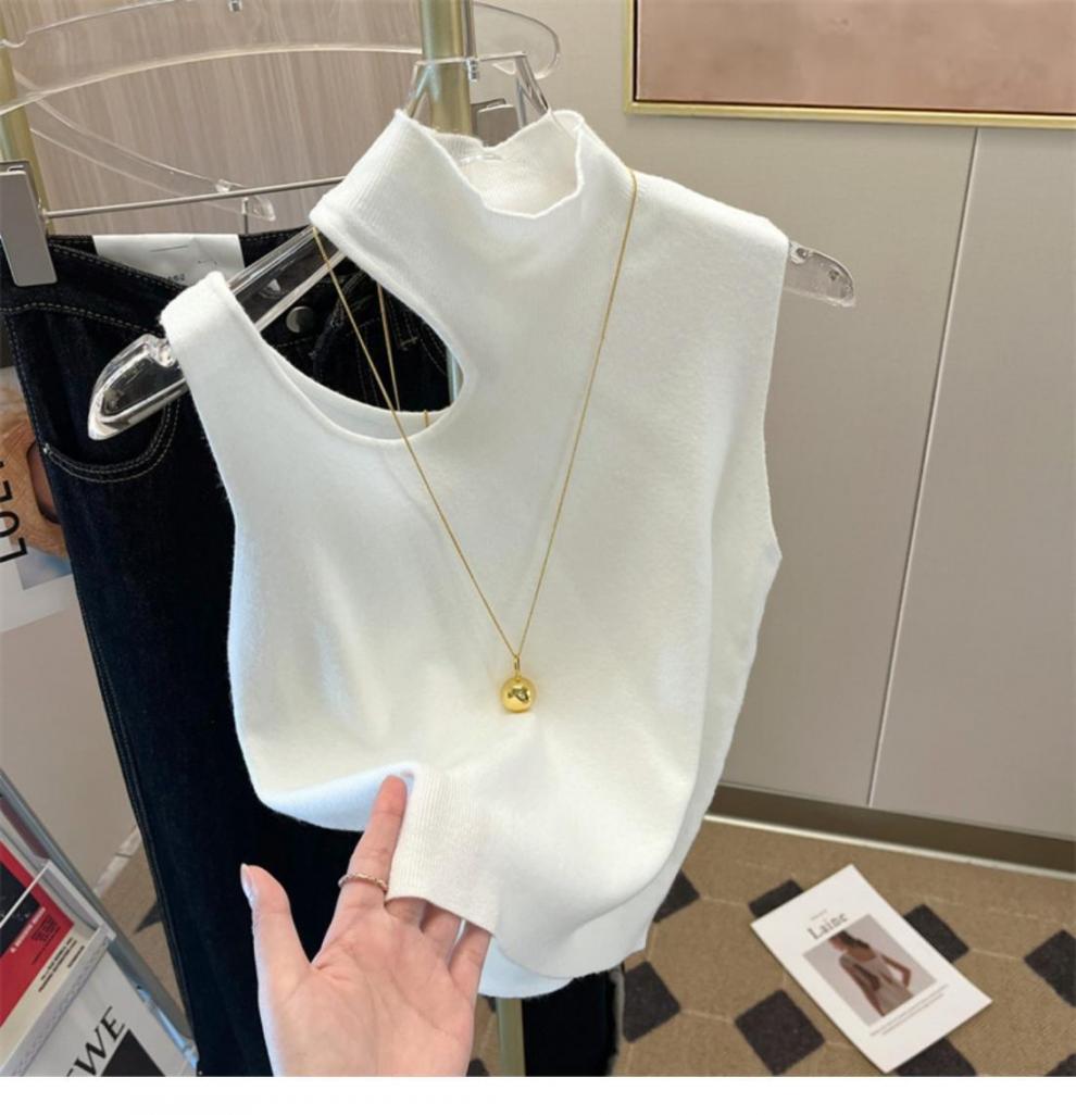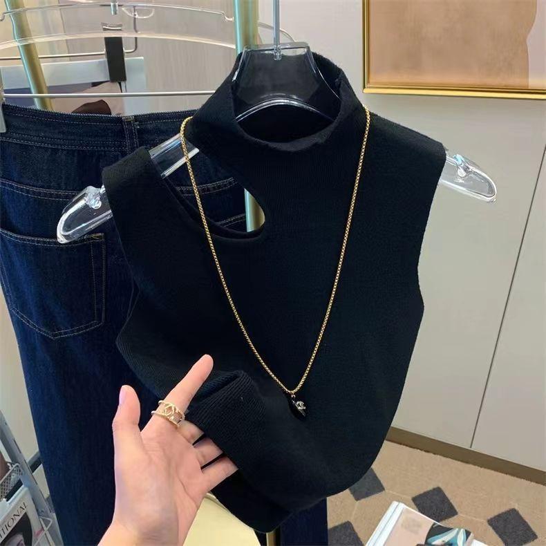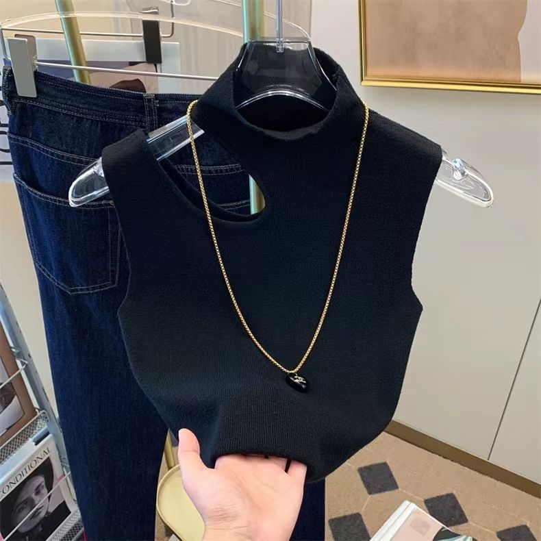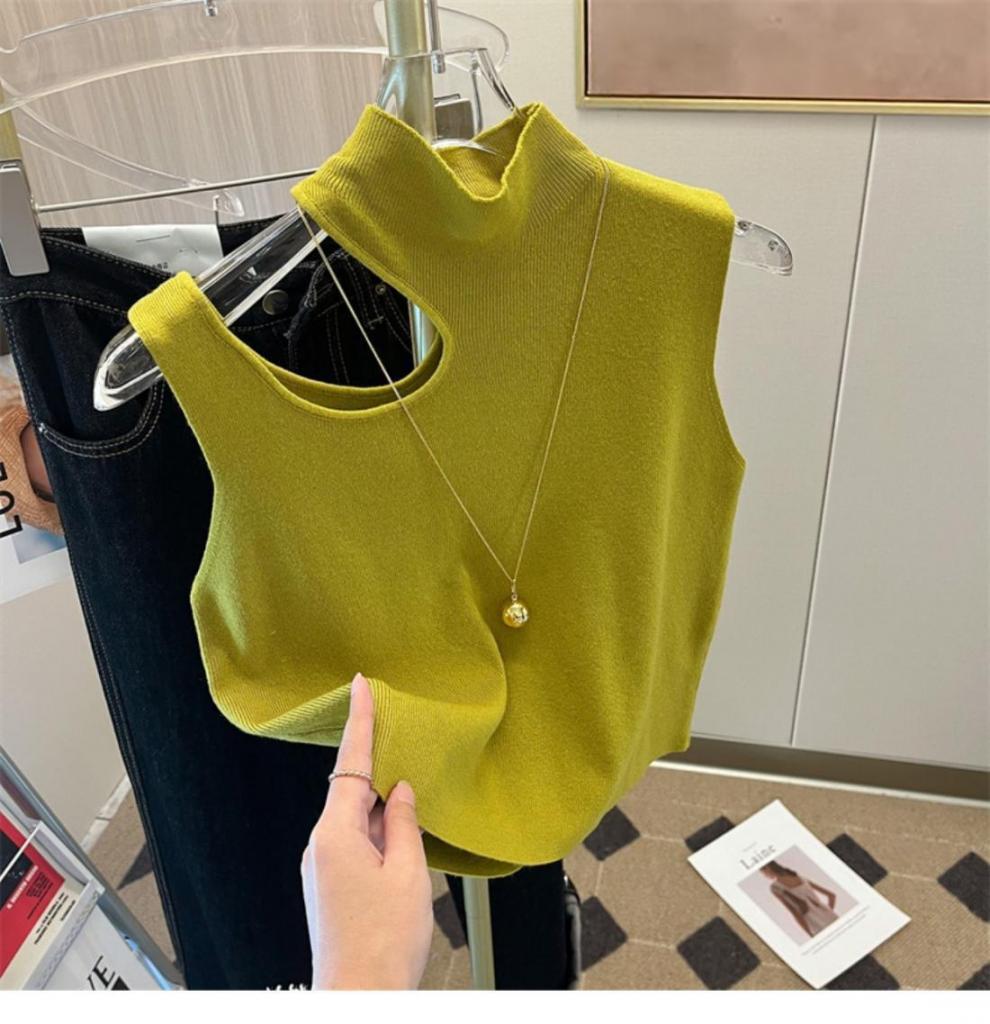 Tricô Sem Mangas Gola Alta Metade para Mulheres 2024 Novo Doce Ajuste Slim Versátil Estilo Estrangeiro Camiseta de Base para Mulheres