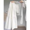 Saia branca feminina primavera e verão 2025, nova saia de cintura alta, slim, comprimento médio, estilo suave, saia tipo bolo bufante