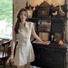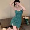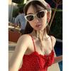 Verão novo quente menina vermelha floral slim-fit sling vestido feminino v-neck cordão slim-fit a- linha vestido curto