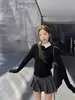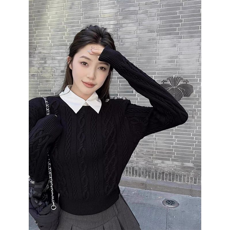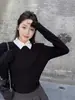 Suéter Sexy Estilo Nicho Coreano Falso Duas Peças Menina Quente Camiseta Feminina Outono e Inverno Tricô Preguiçoso Top Ins
