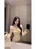 Camiseta Tricotada de Manga Comprida com Gola Balanço Estilo Coreano Feminina Outono Ajustada Justa Camiseta Básica Spice Girls Cor Sólida Curta Que Combina Com Tudo