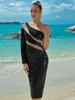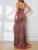 Amazon Transfronteiriço Novo Decote V Cor Sólida Bronzeado Ajustado Alça Festa Banquete Fenda Vestido Longo de Noite