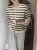Hanyuan Apparel/ Cardigã Listrado Novo Primavera e Outono 25 Estilo Chanel Lã Jaqueta Curta de Tricô