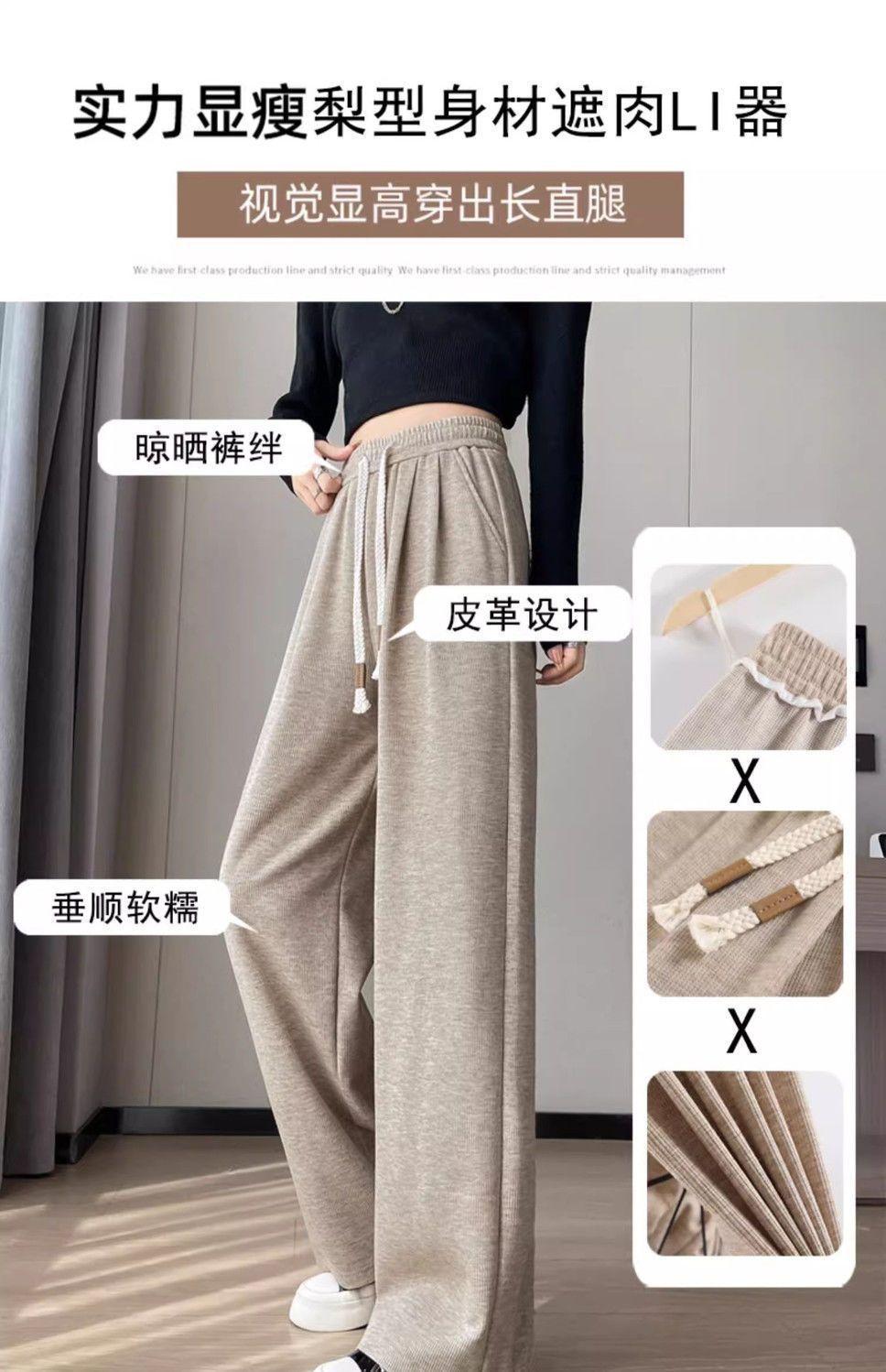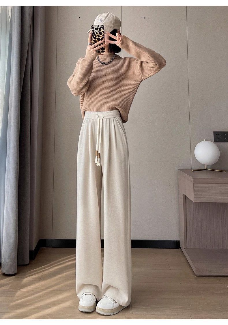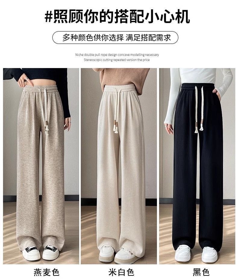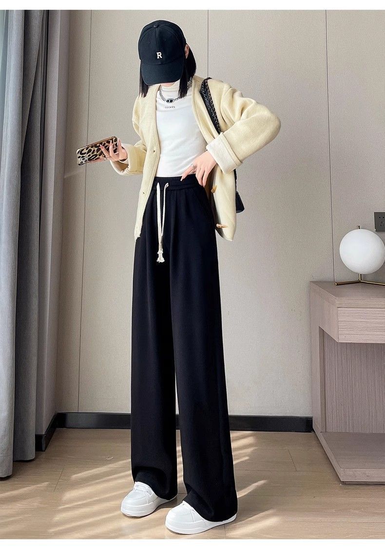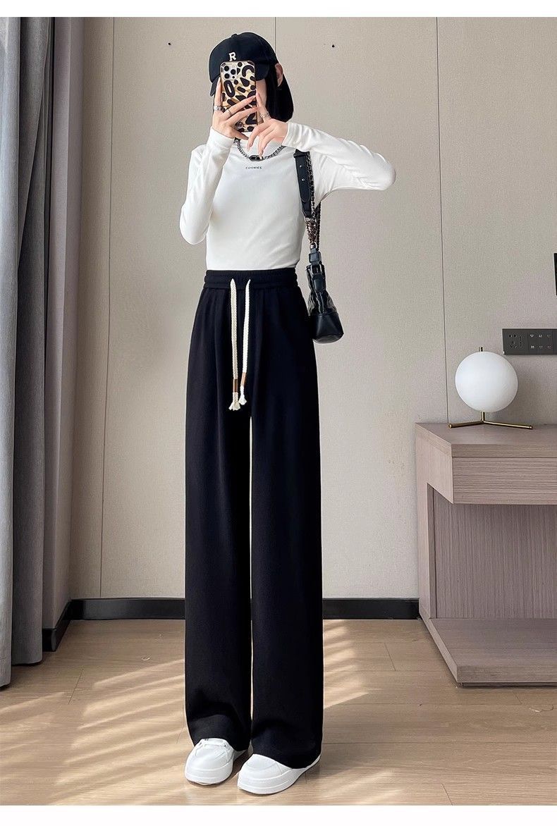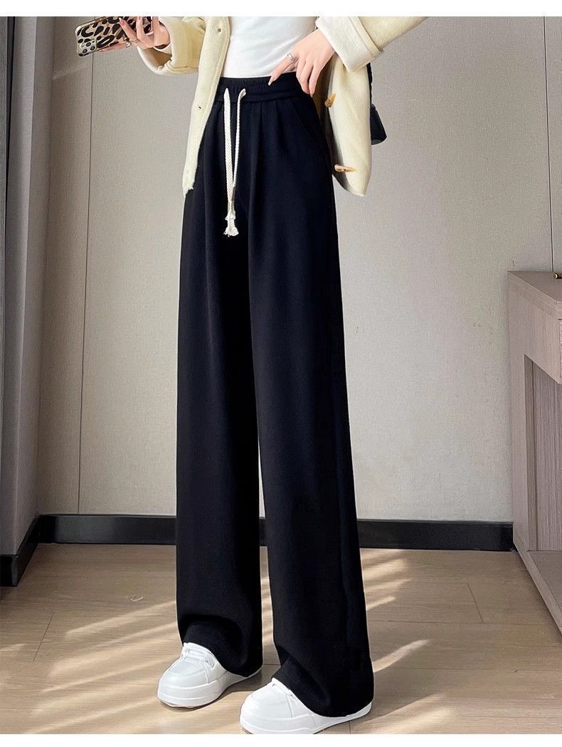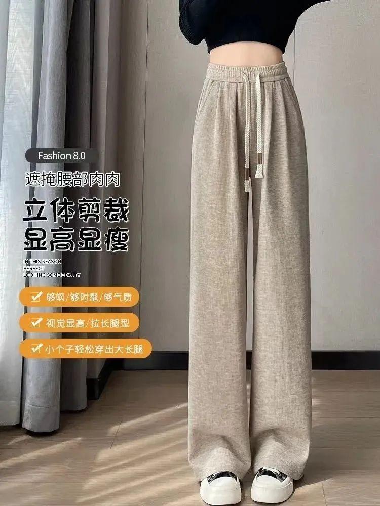 Calça casual drapeada estilo preguiçosa, outono estilo coreano 2024, nova calça de cintura alta, emagrecedora, perna larga, calça comprida, calça de espreguiçadeira, roupa feminina