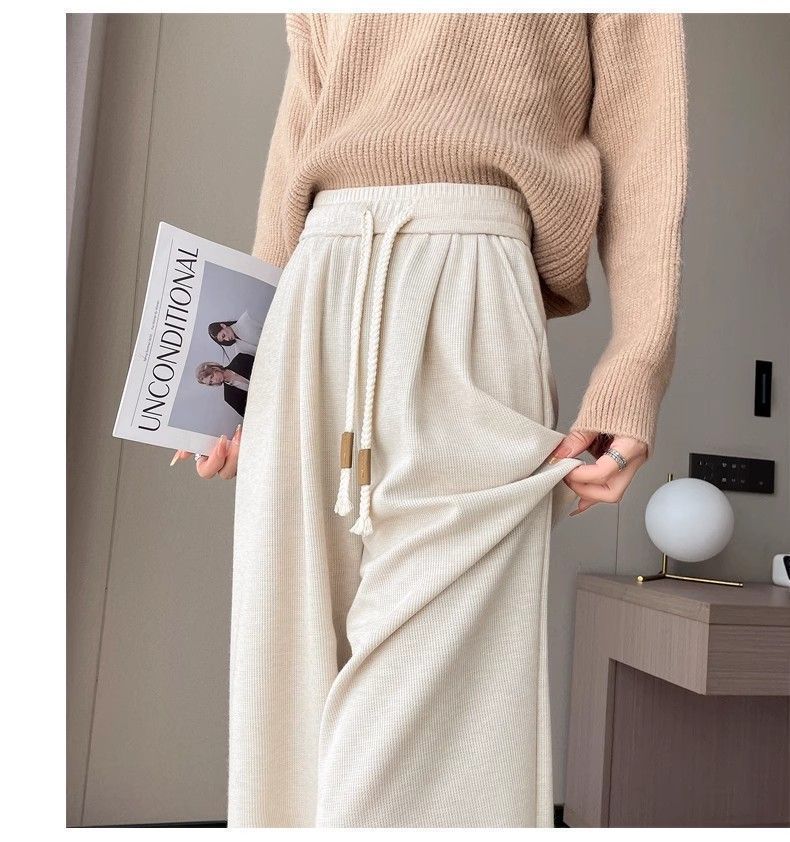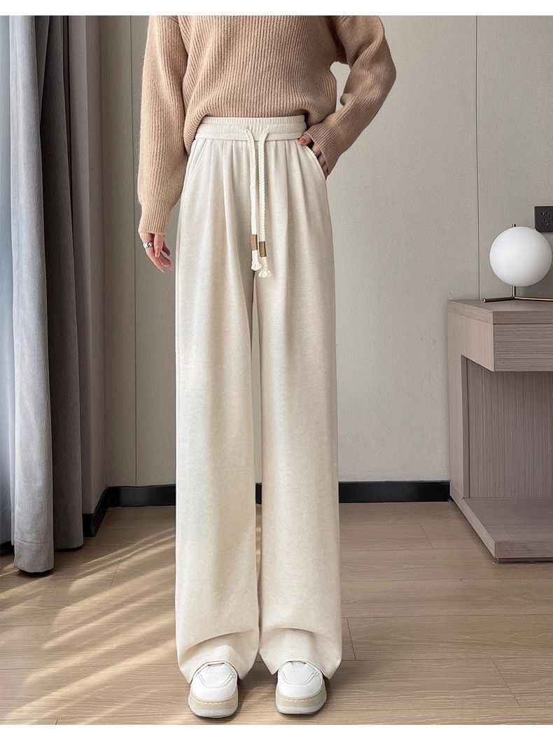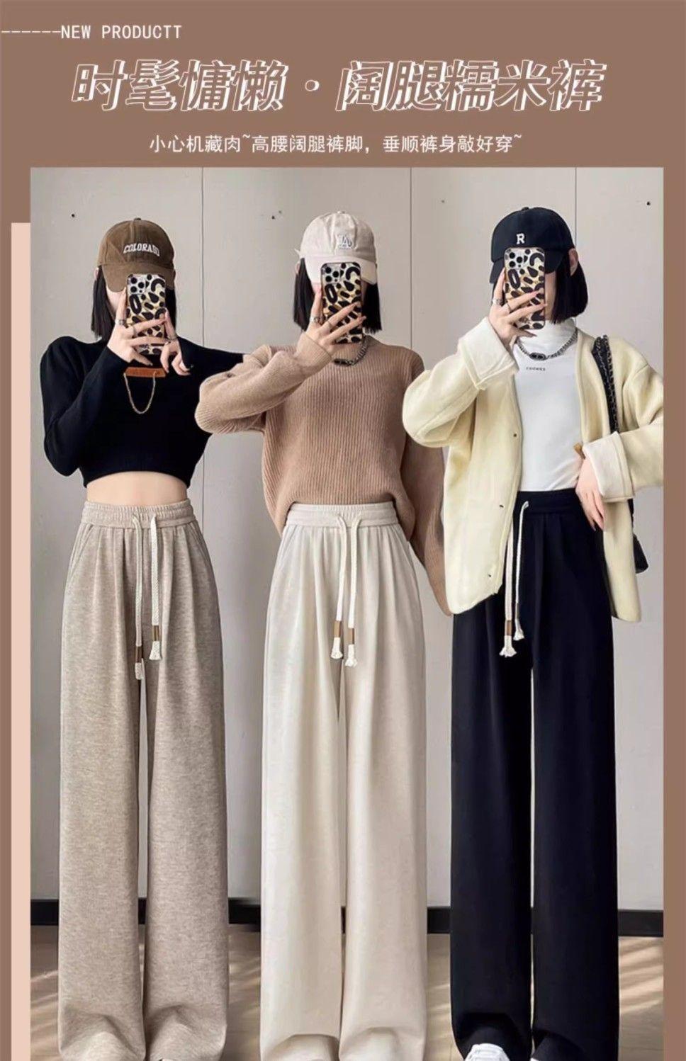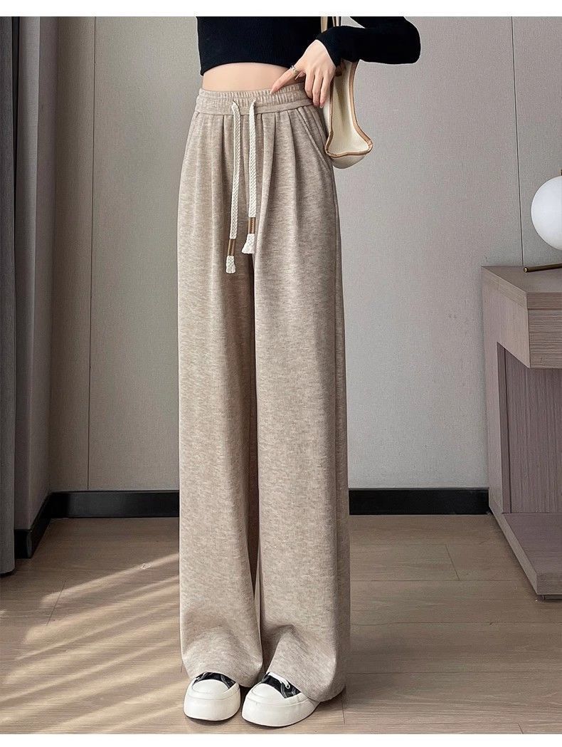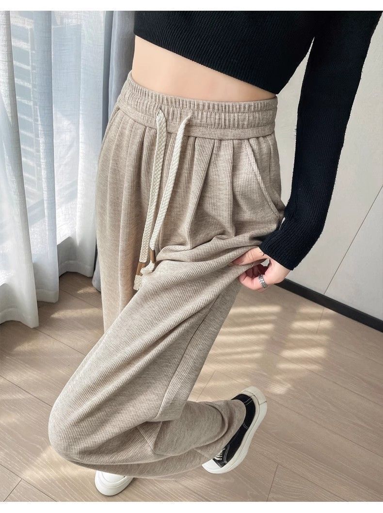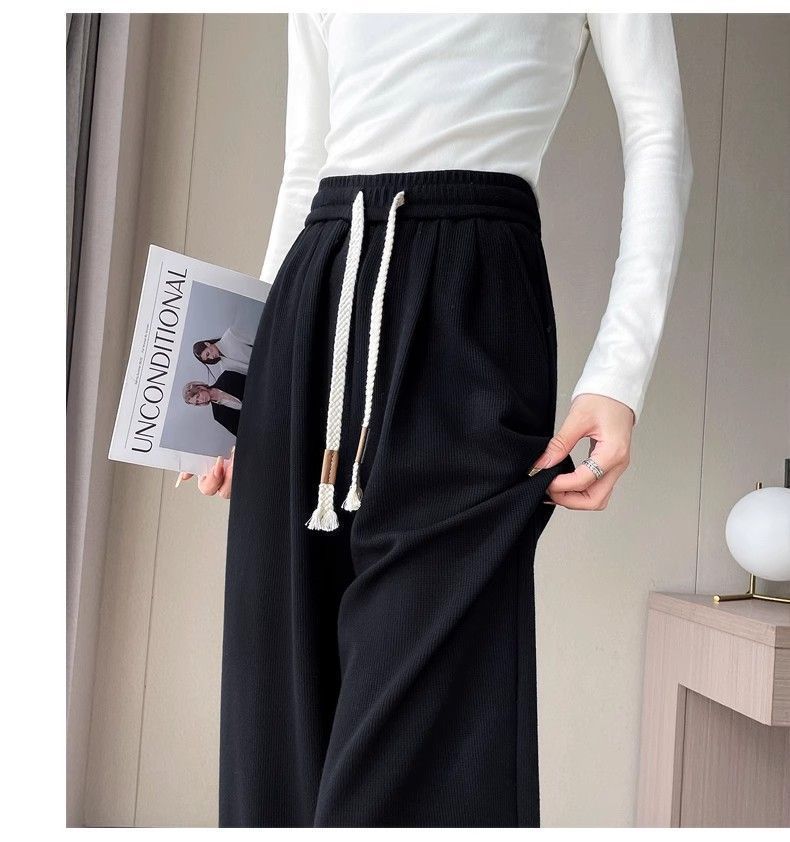 Calça casual drapeada estilo preguiçosa, outono estilo coreano 2024, nova calça de cintura alta, emagrecedora, perna larga, calça comprida, calça de espreguiçadeira, roupa feminina