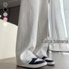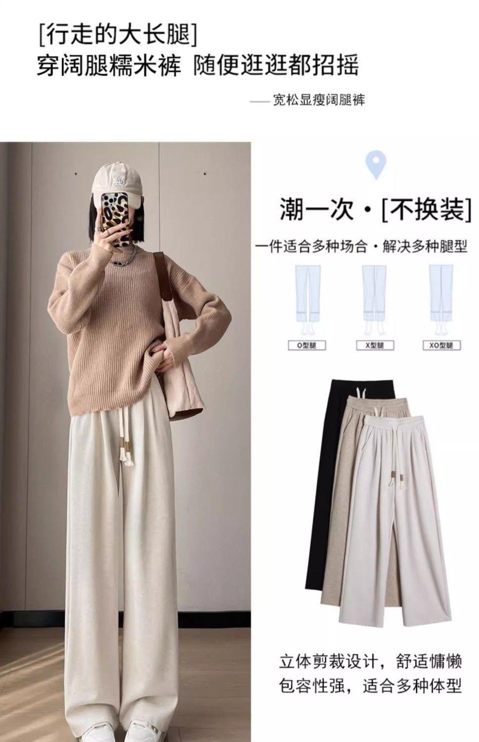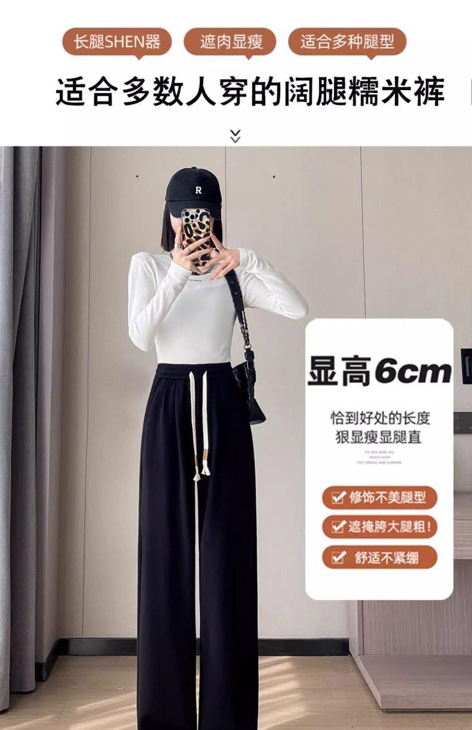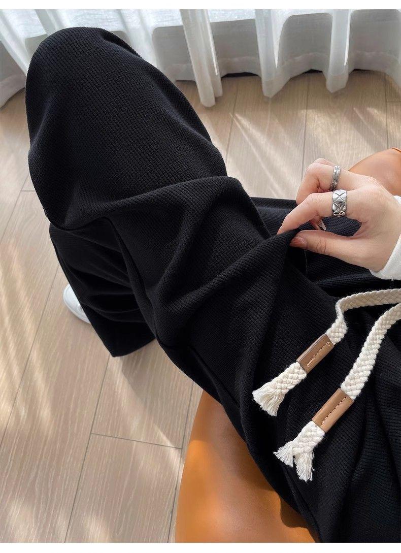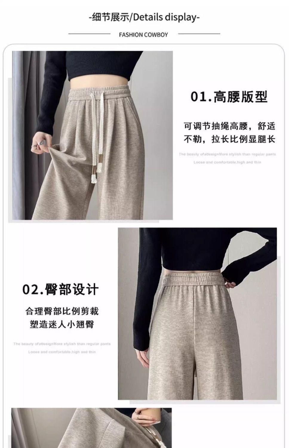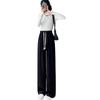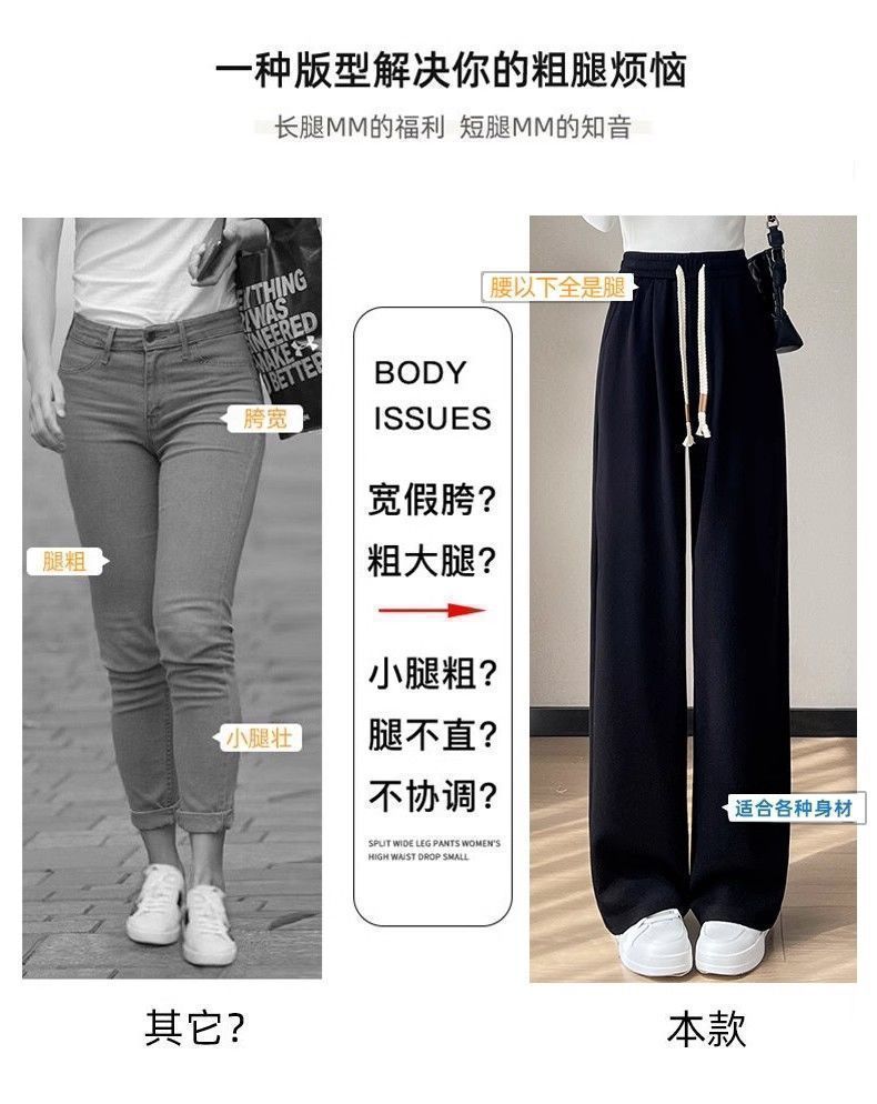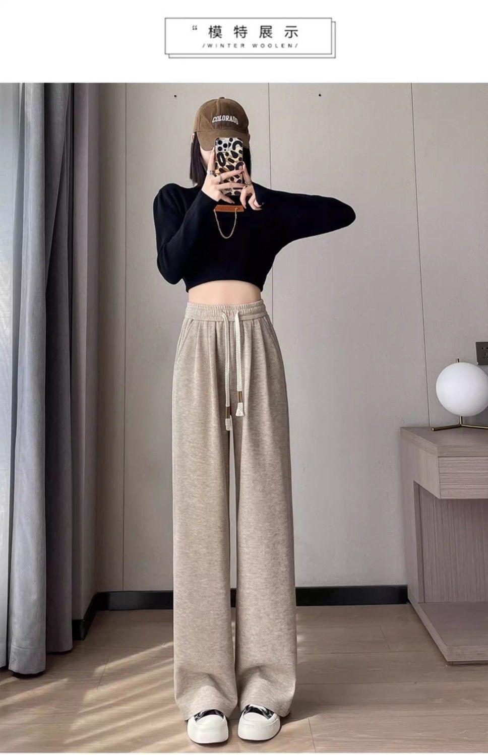 Calça casual drapeada estilo preguiçosa, outono estilo coreano 2024, nova calça de cintura alta, emagrecedora, perna larga, calça comprida, calça de espreguiçadeira, roupa feminina