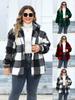 Jaqueta Xadrez Plus Size Feminina Europeia e Americana com Lapela de Pelúcia Espessa