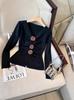 Estilo Francês Elegante Senso de Design Flor Suéter de Manga Comprida Primavera 2025 Decote em V Chique Lindo Top Camisa Básica Feminina