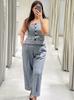 Couro bully transfronteiriço europeu e americano feminino renda perspectiva costura manga longa top calça justa terno sexy atacado