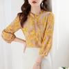 Demana Feminino Manga Três Quartos Primavera e Verão 2025 Novo Gola Redonda Linha de Contraste Decorativo Casual Manga Lanterna Top