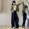Calças casuais femininas de renda PolisePoint retas 2025 primavera nova chegada estilo preguiçoso cintura alta emagrecimento calças largas soltas