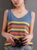 Suéter de malha, camiseta feminina, nova primavera de 2025, listrada multicolorida europeia e americana, com decote em V, blusa feminina
