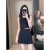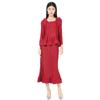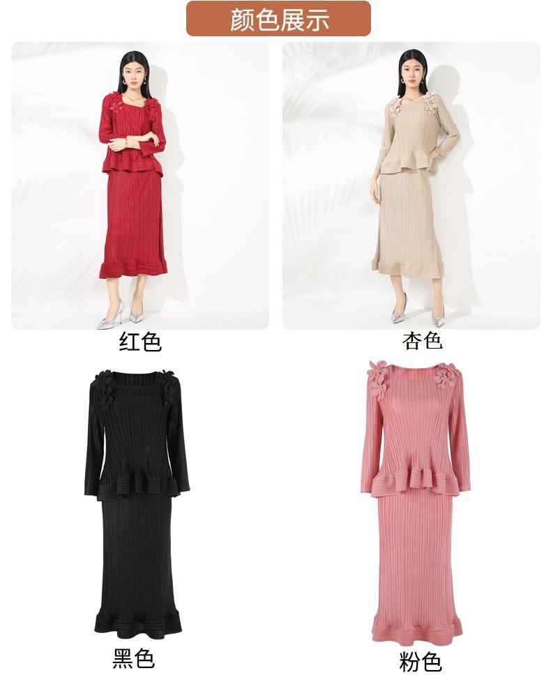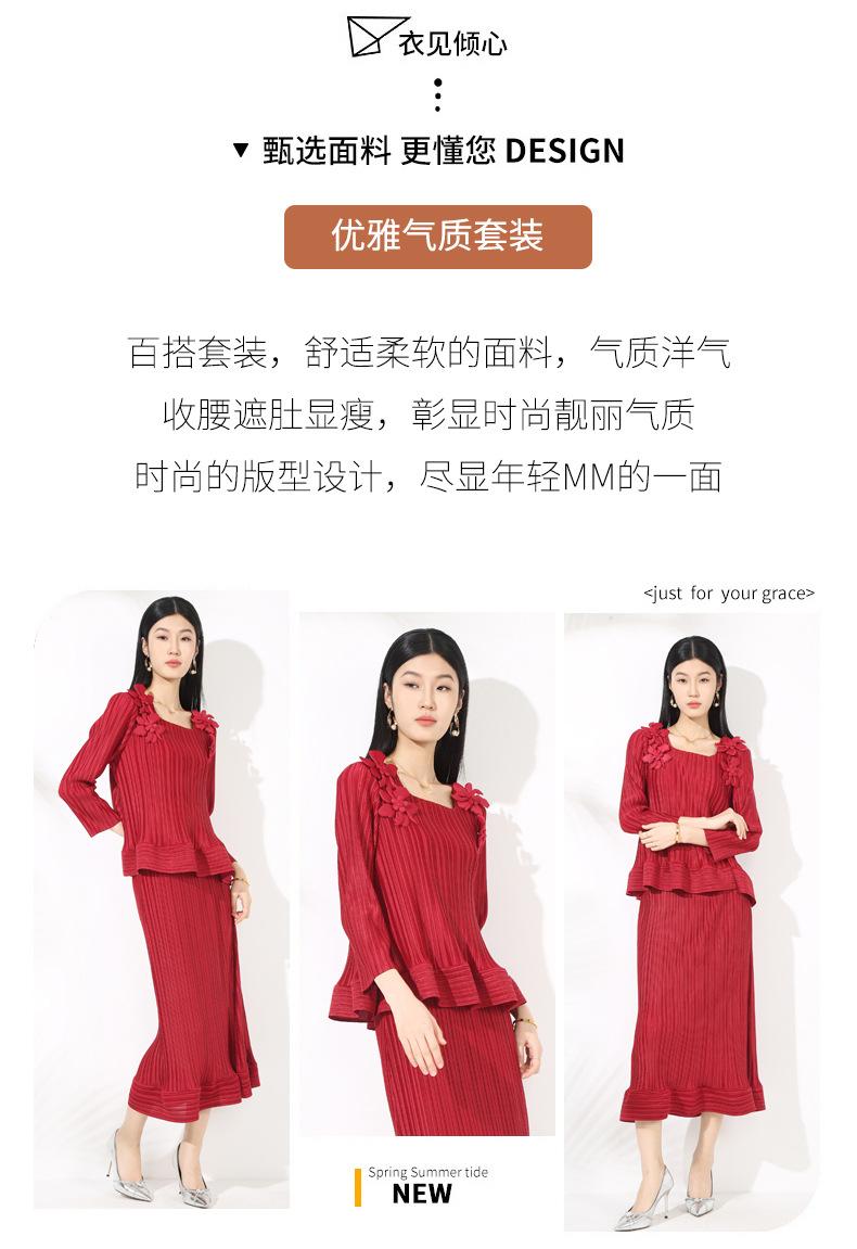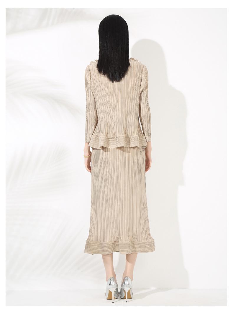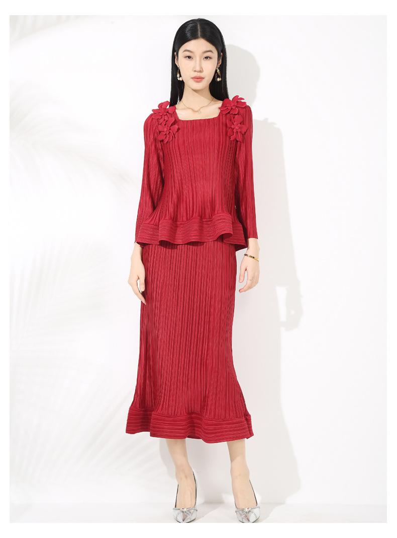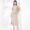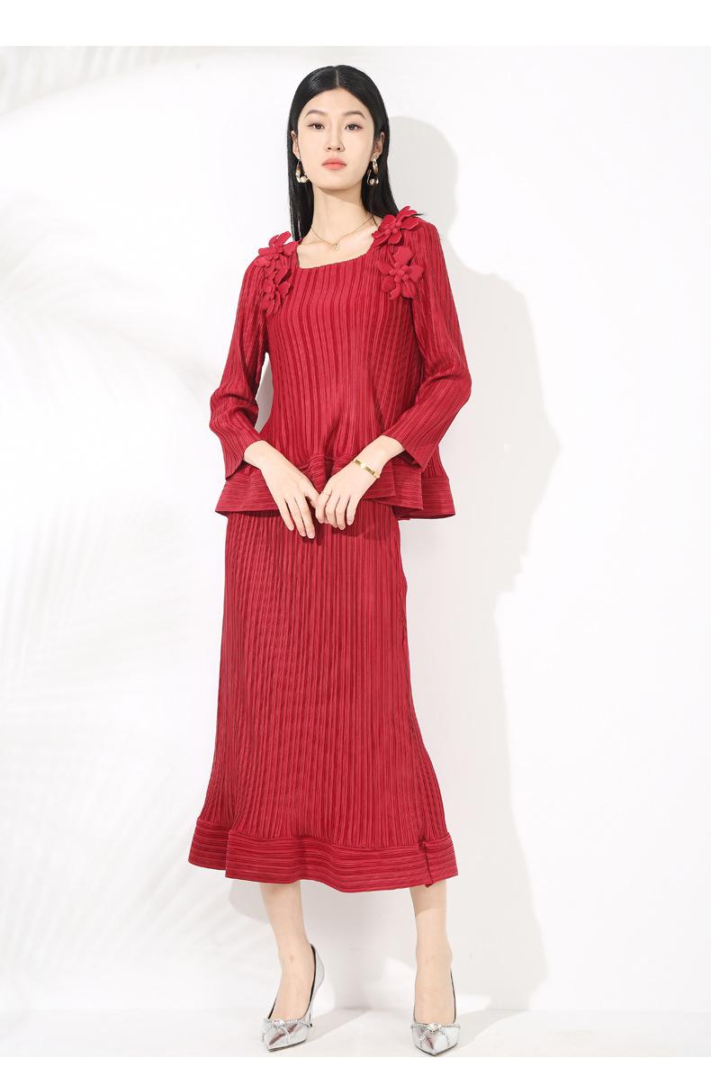 Conjunto de duas peças plissado, moda primavera 2025, design sofisticado, moda floral, top e meia saia