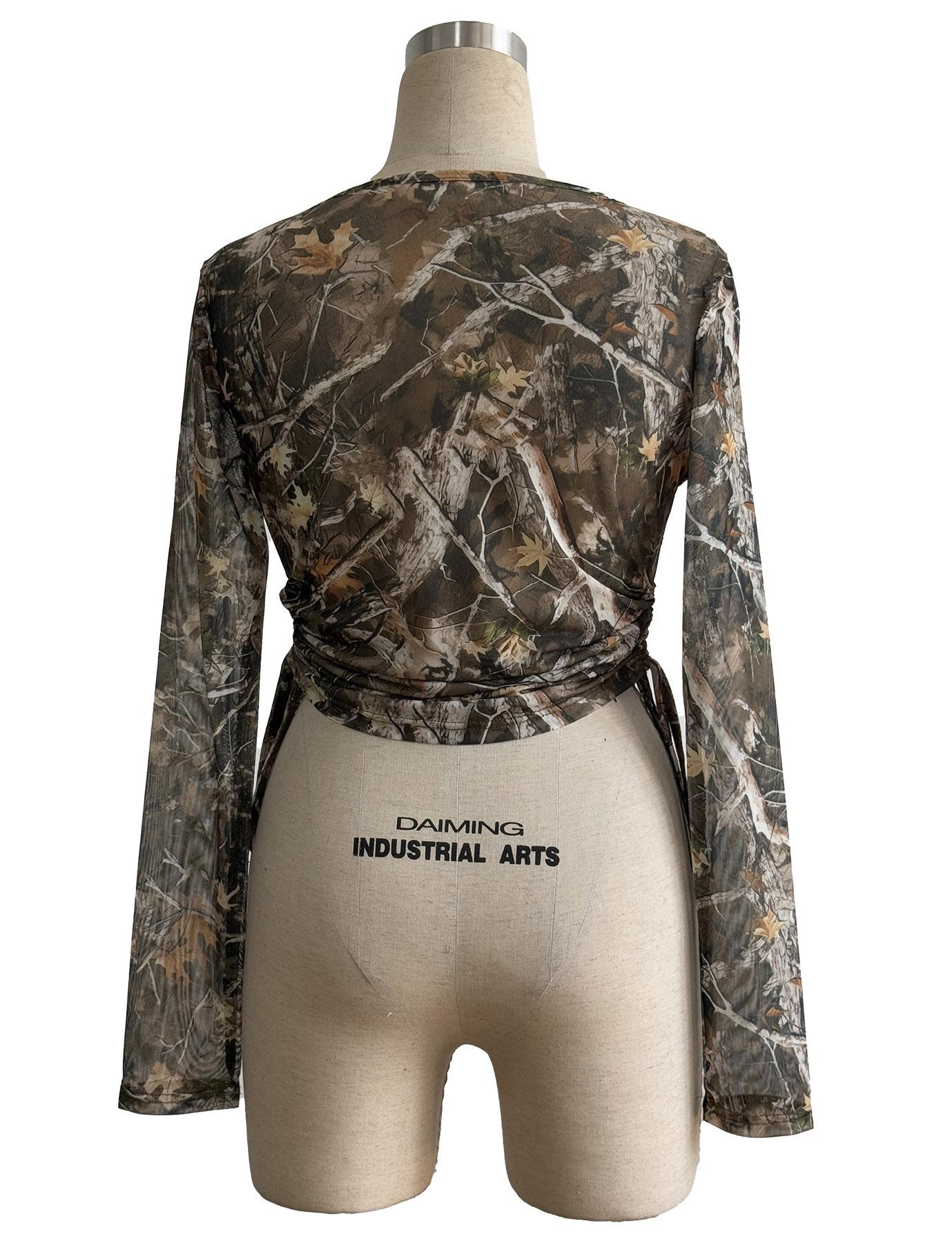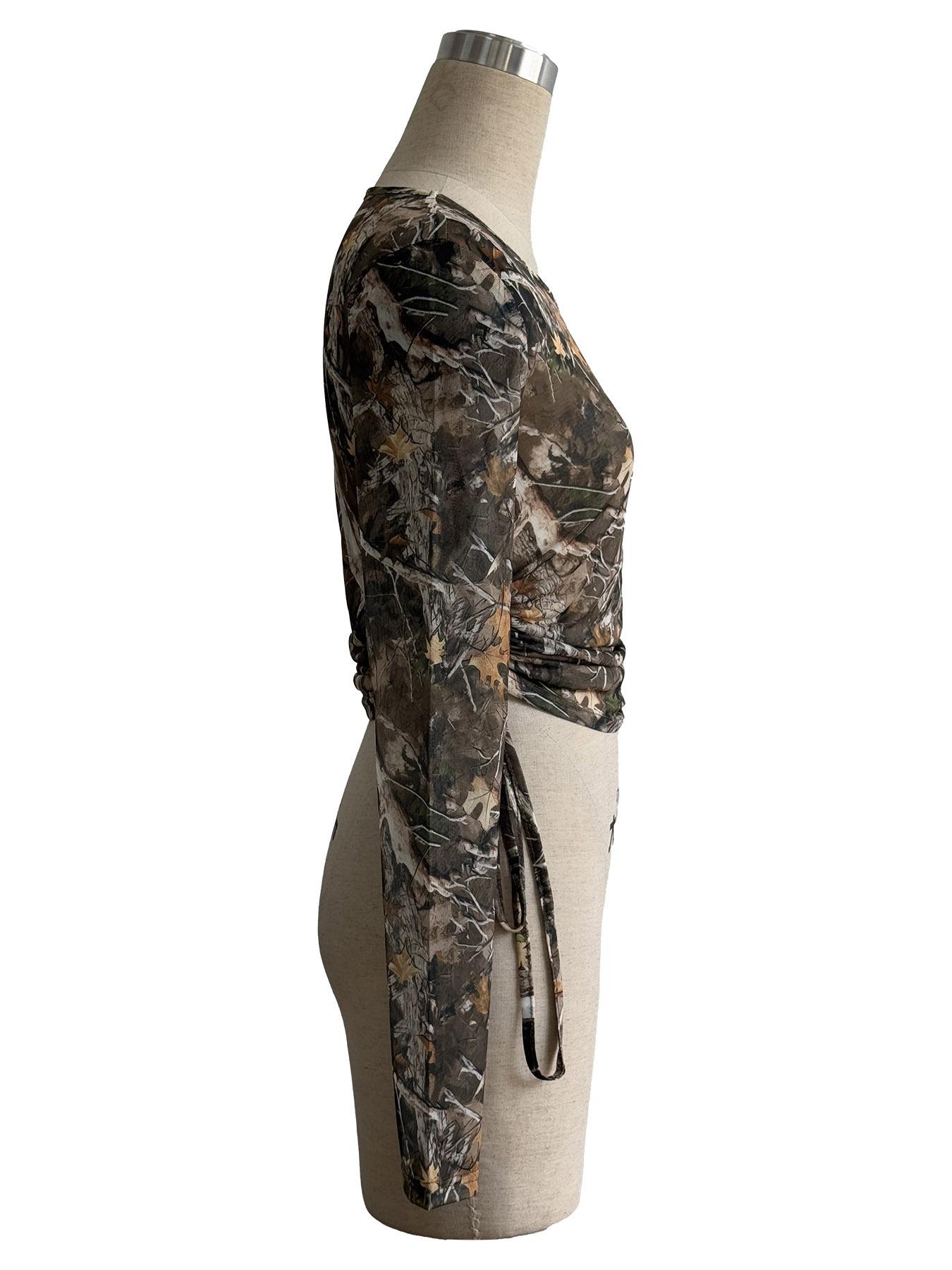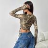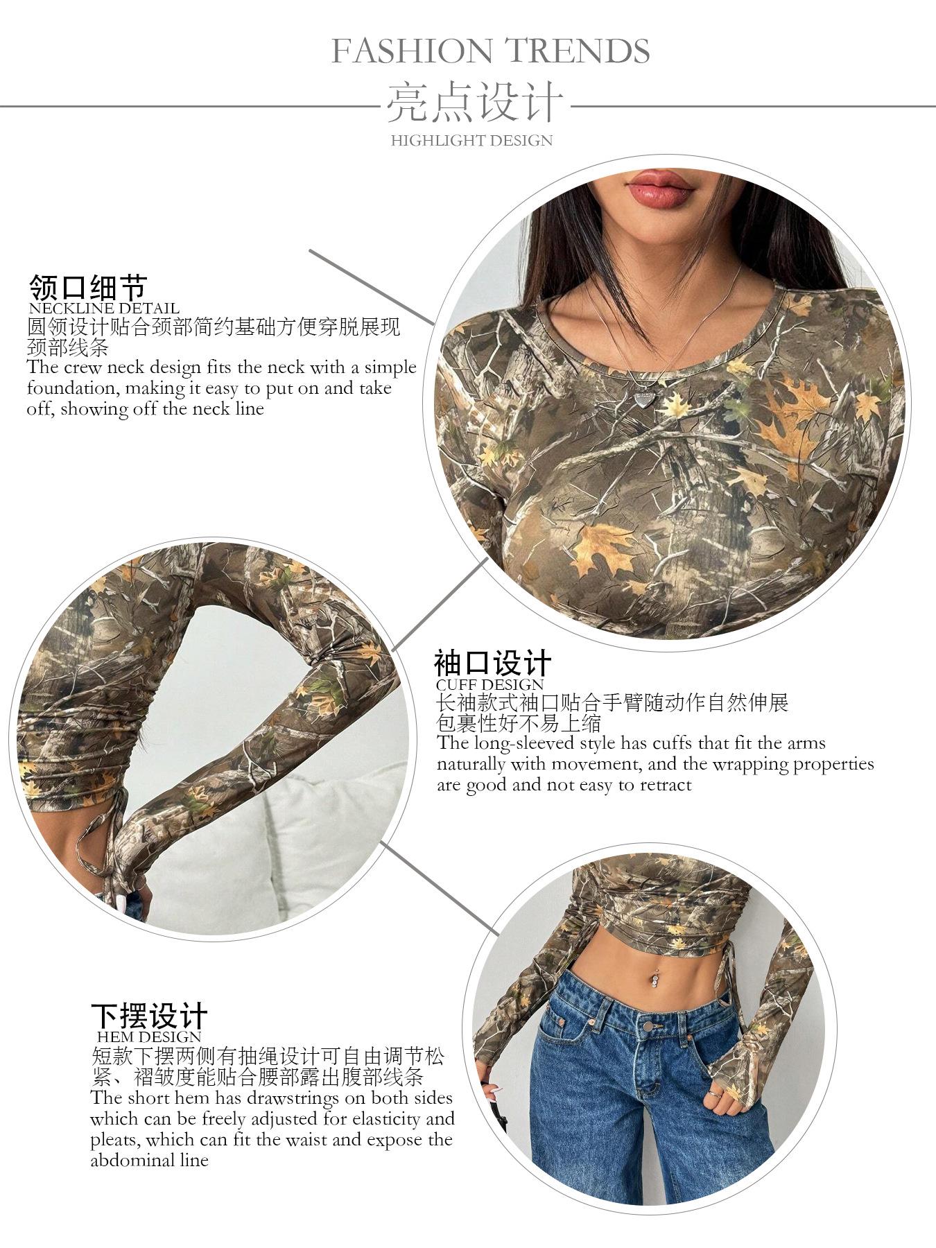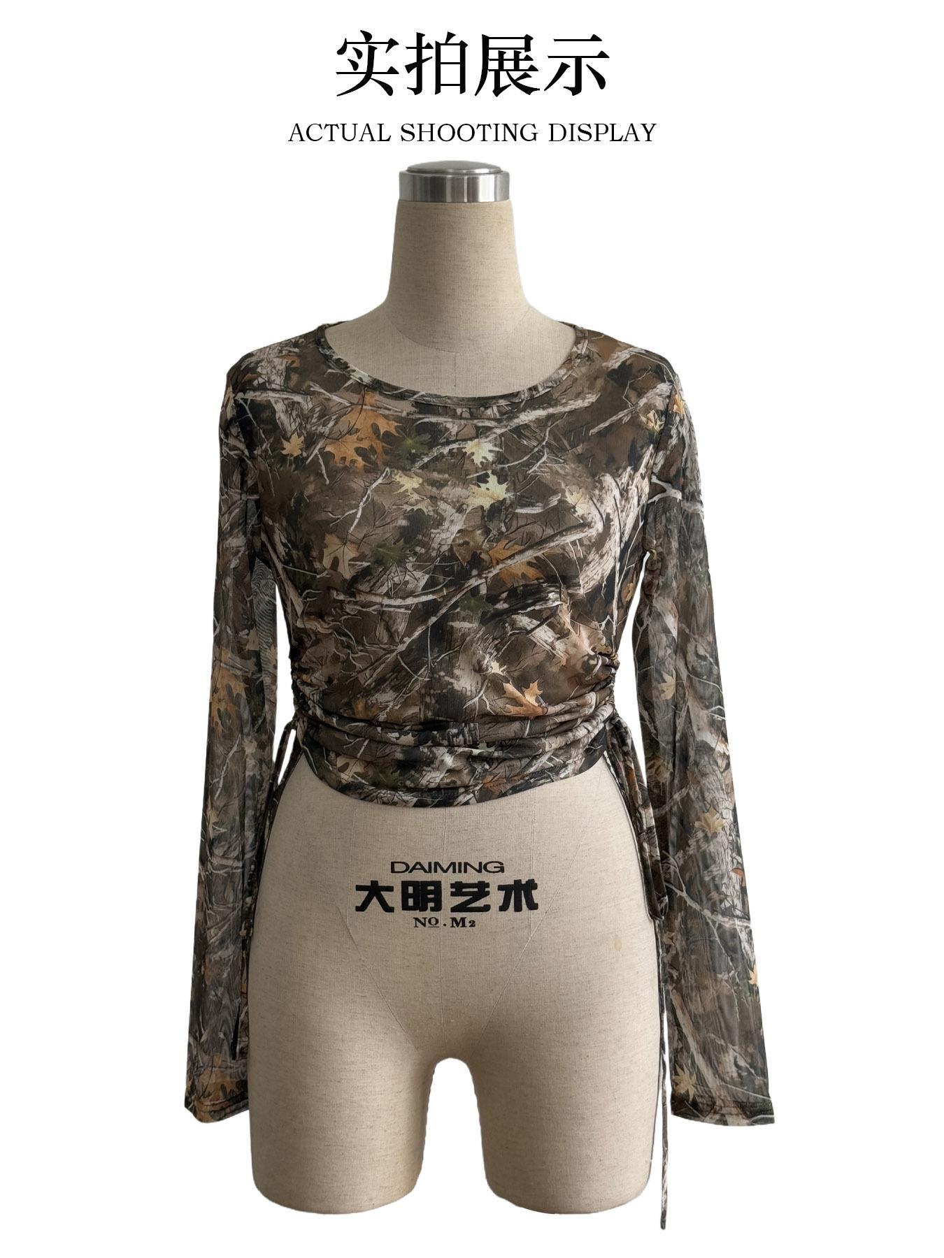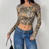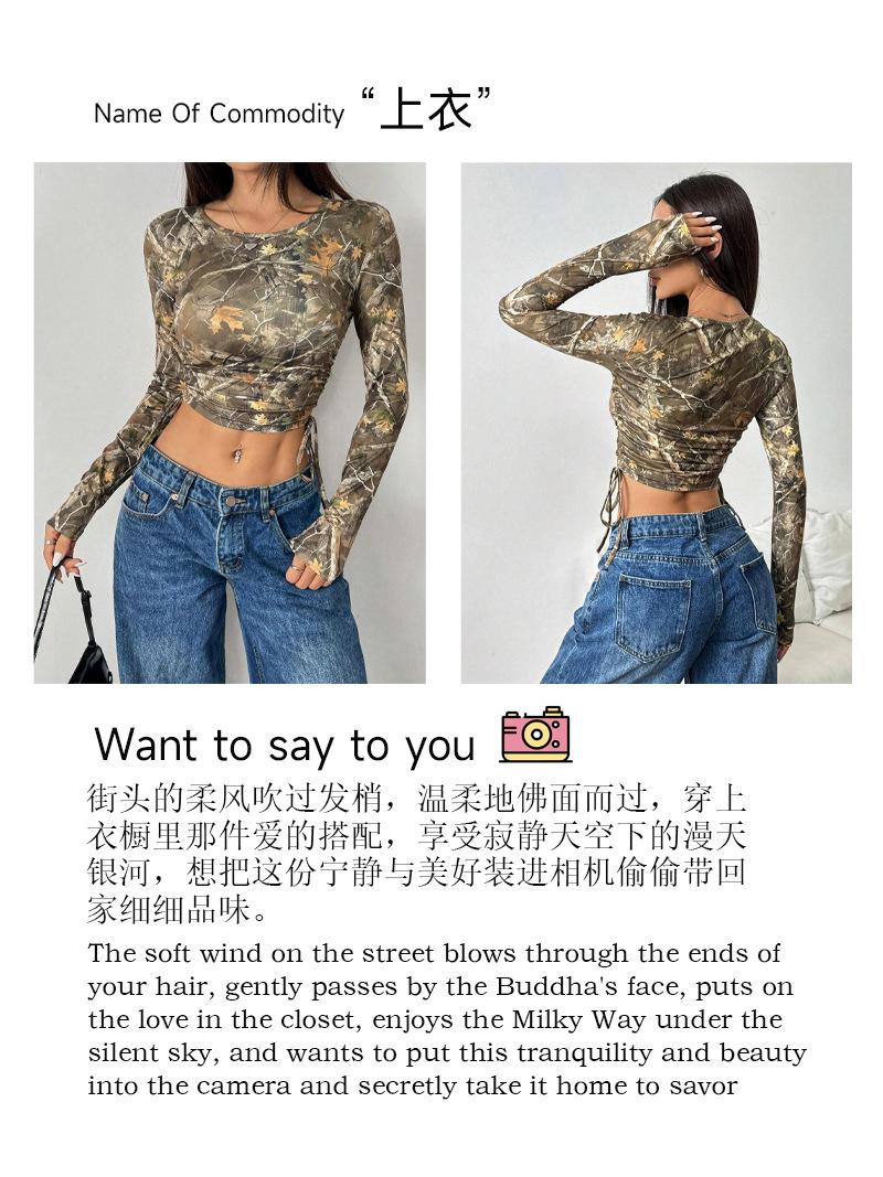 Europeu e Americano Transfronteiriço 2025 Outono e Inverno Novo Top Feminino de Malha Estampa de Galhos Cordão Lateral Slim Curto para Mulheres