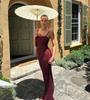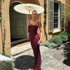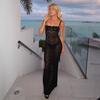 Vestido feminino estilo europeu e americano 2024, novo, moda feminina, gola sexy, perspectiva, renda, alça fina