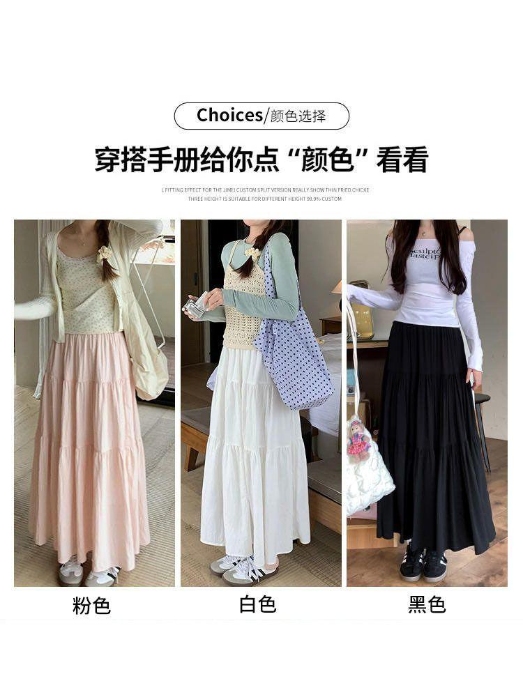 Saia feminina primavera e verão 2025 nova saia longa slim em linha A saia longa grande saia longa drapeada