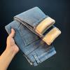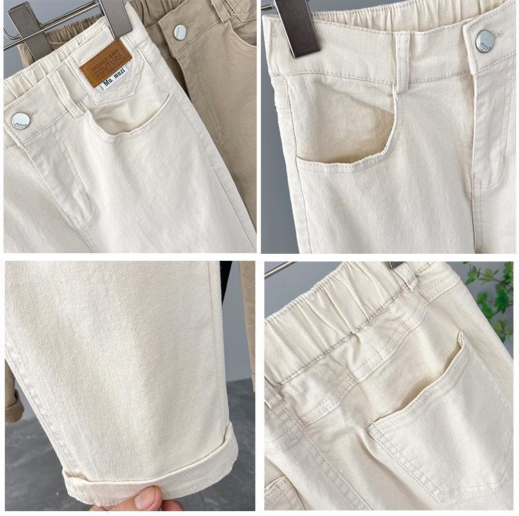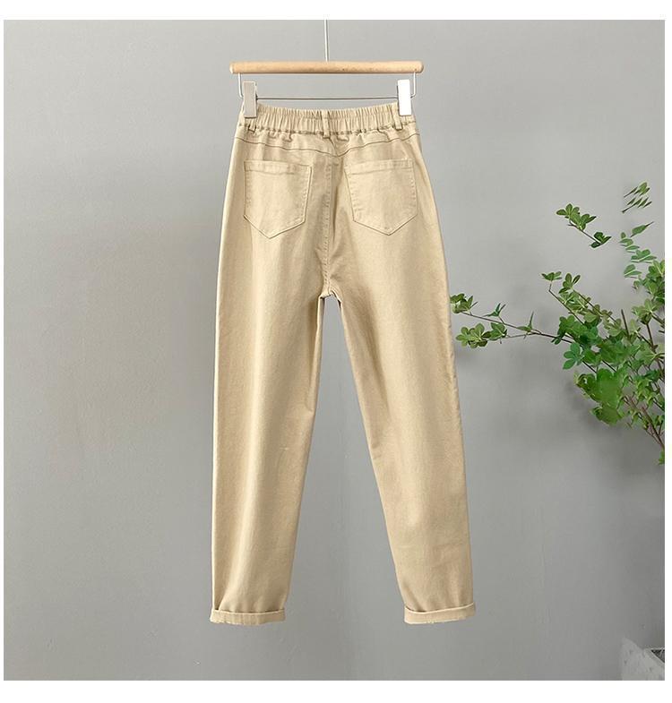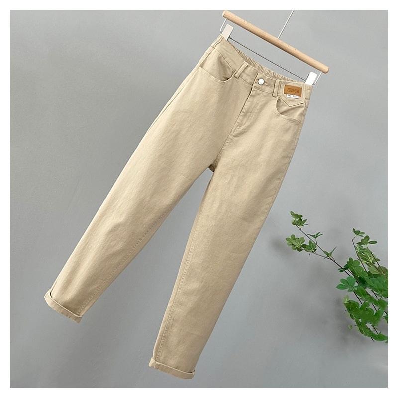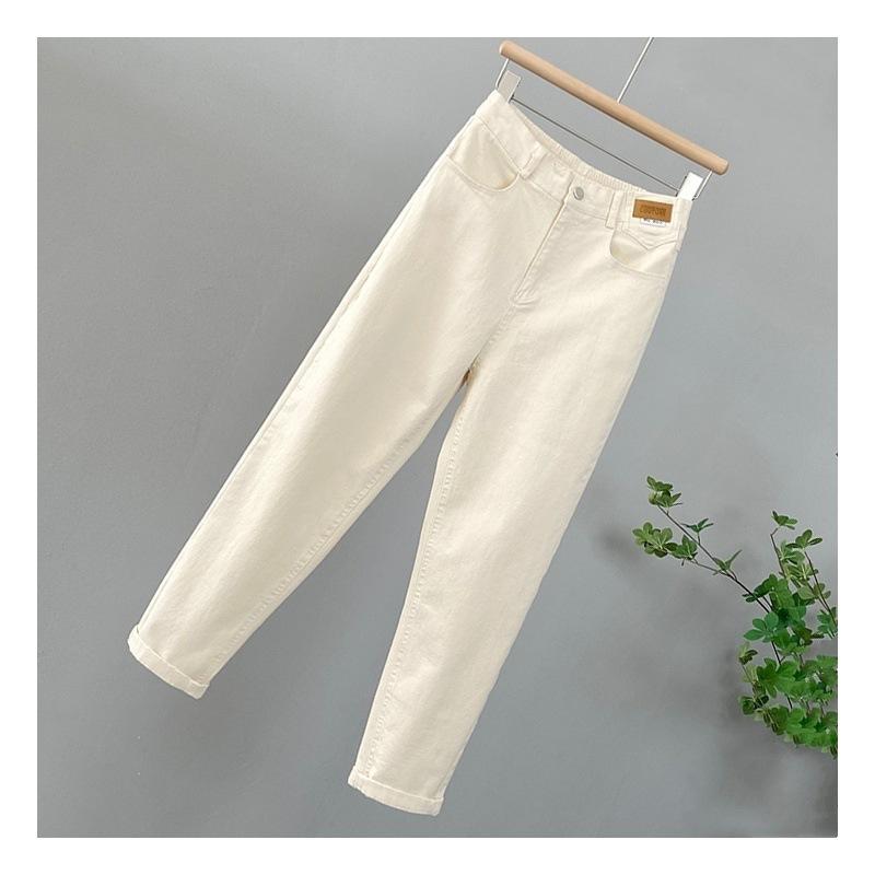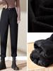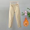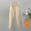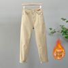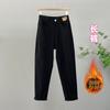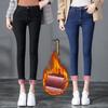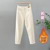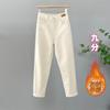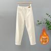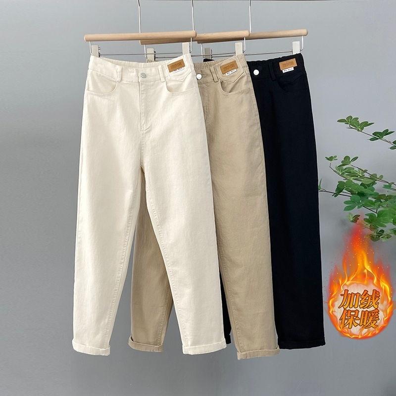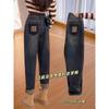 Calça jeans feminina quente com forro de lã, nova moda outono e inverno 2024, cintura alta, solta, casual, slim, estilo pai, calça cropped Harlan