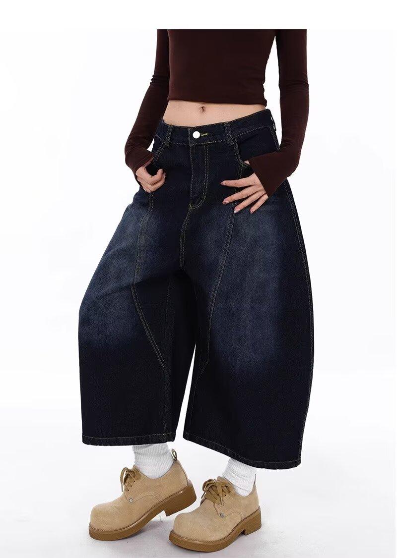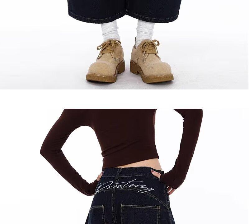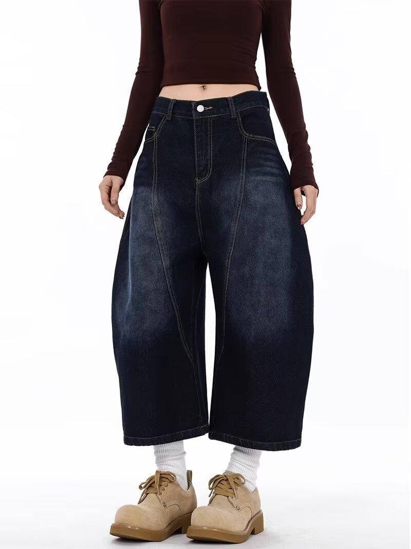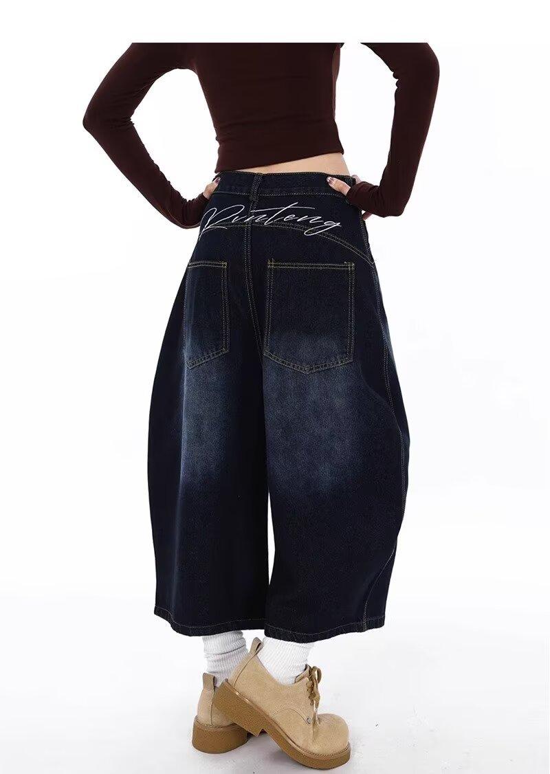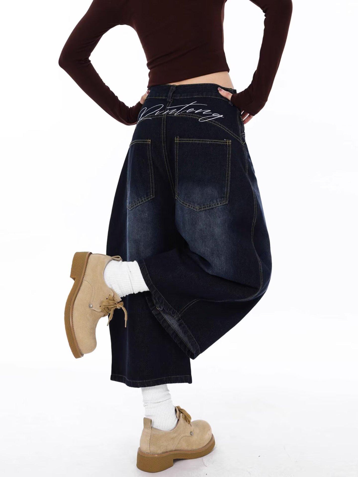 Jeans Lavados Estilo Americano com Bordado nas Costas, Calças Novas de Cintura Média, Modelagem Slim, Soltas, Retas, Casuais, Cropped