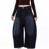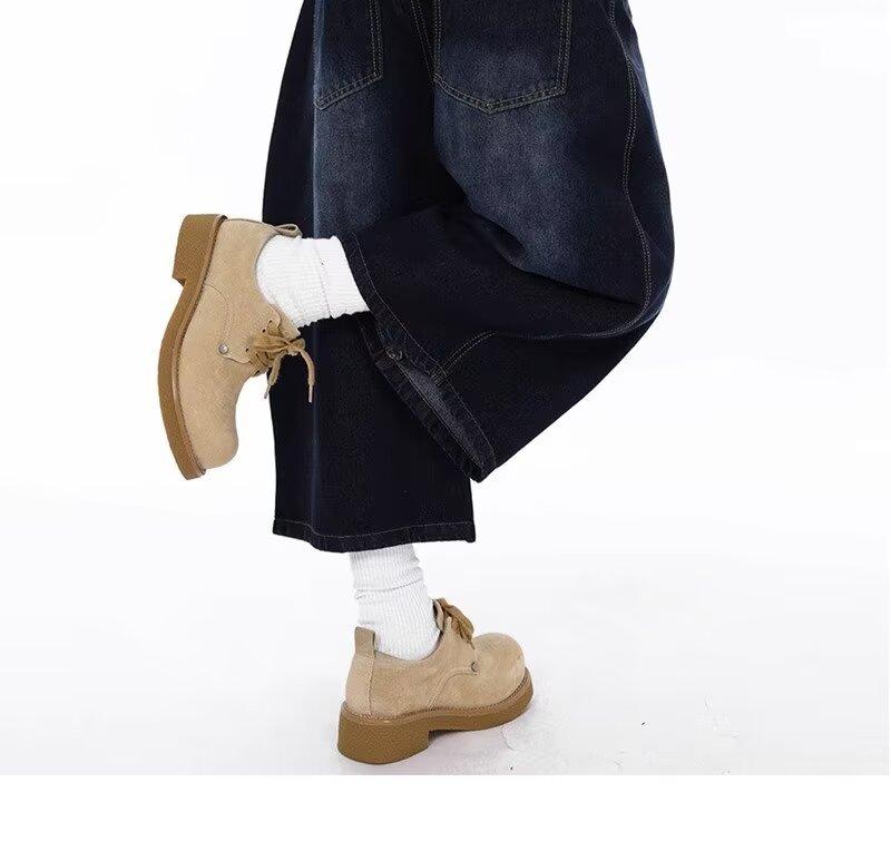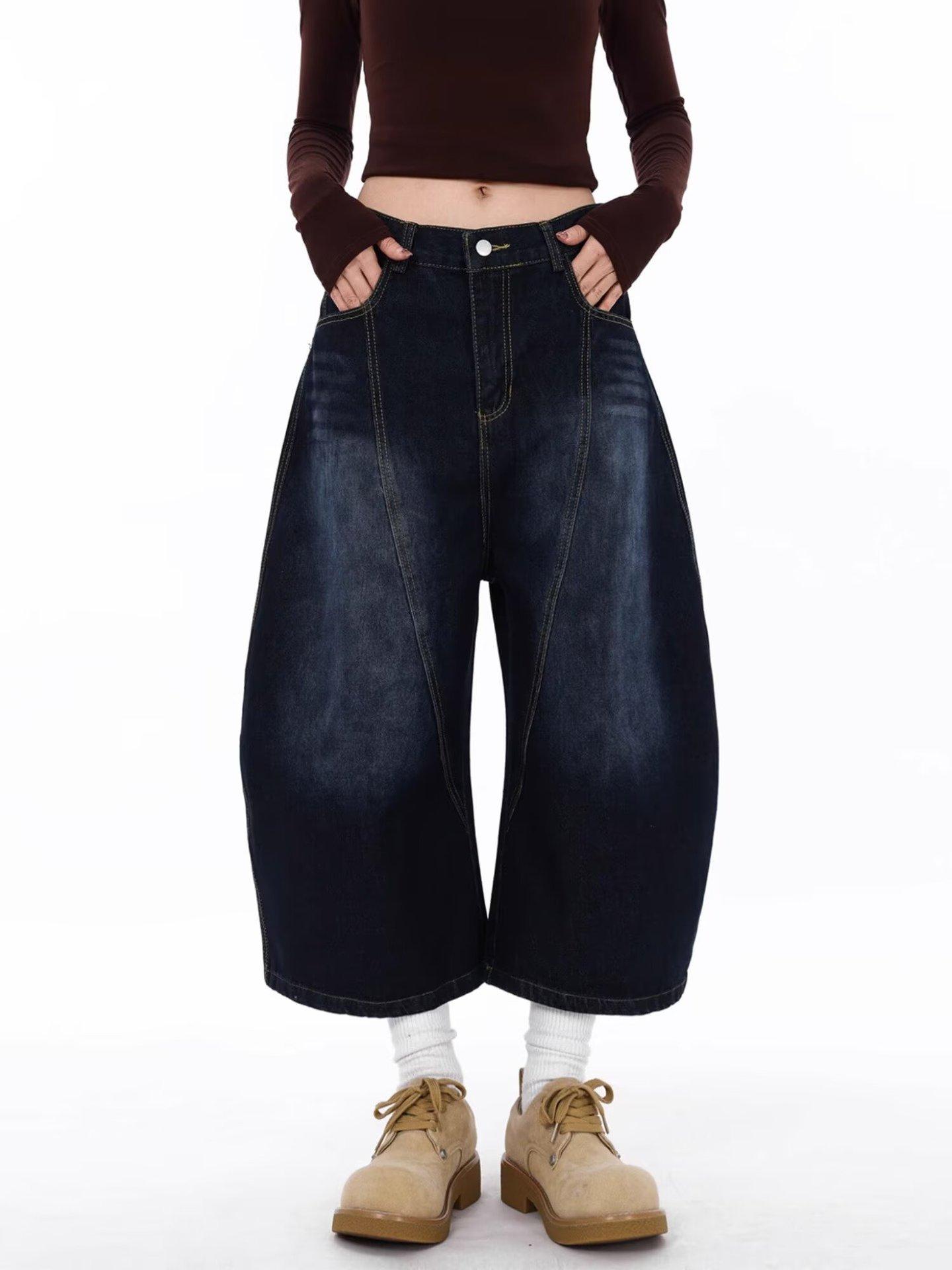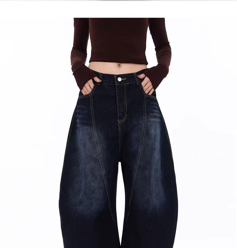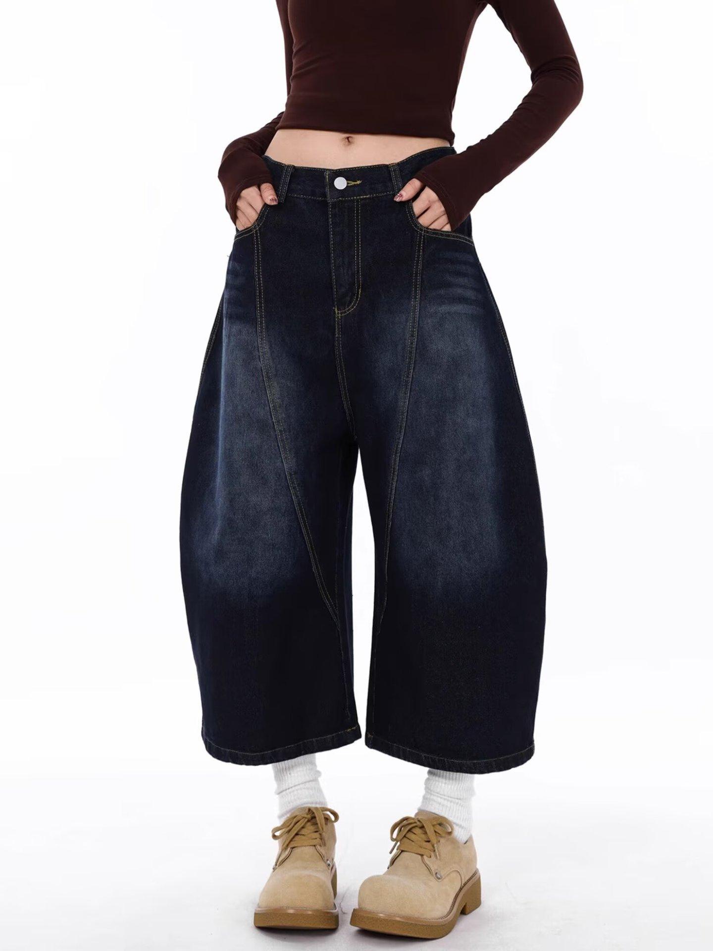 Jeans Lavados Estilo Americano com Bordado nas Costas, Calças Novas de Cintura Média, Modelagem Slim, Soltas, Retas, Casuais, Cropped