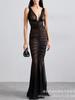 2025 Novo Europeu e Americano Transfronteiriço Elegante e Sexy Cor Pura Decote em V Gaze Slim Vestido de Alças Saia Longa para Mulheres