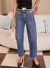 Calça jeans feminina com elástico na cintura baixa e furo para os pés, nova moda europeia e americana da Amazon 2025, em estoque