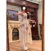 Vestido floral feminino 2024, vestido de verão, novo estilo francês, estilo suave, chiffon, elegante, decote em V, slim, acima do joelho, vestido longo
