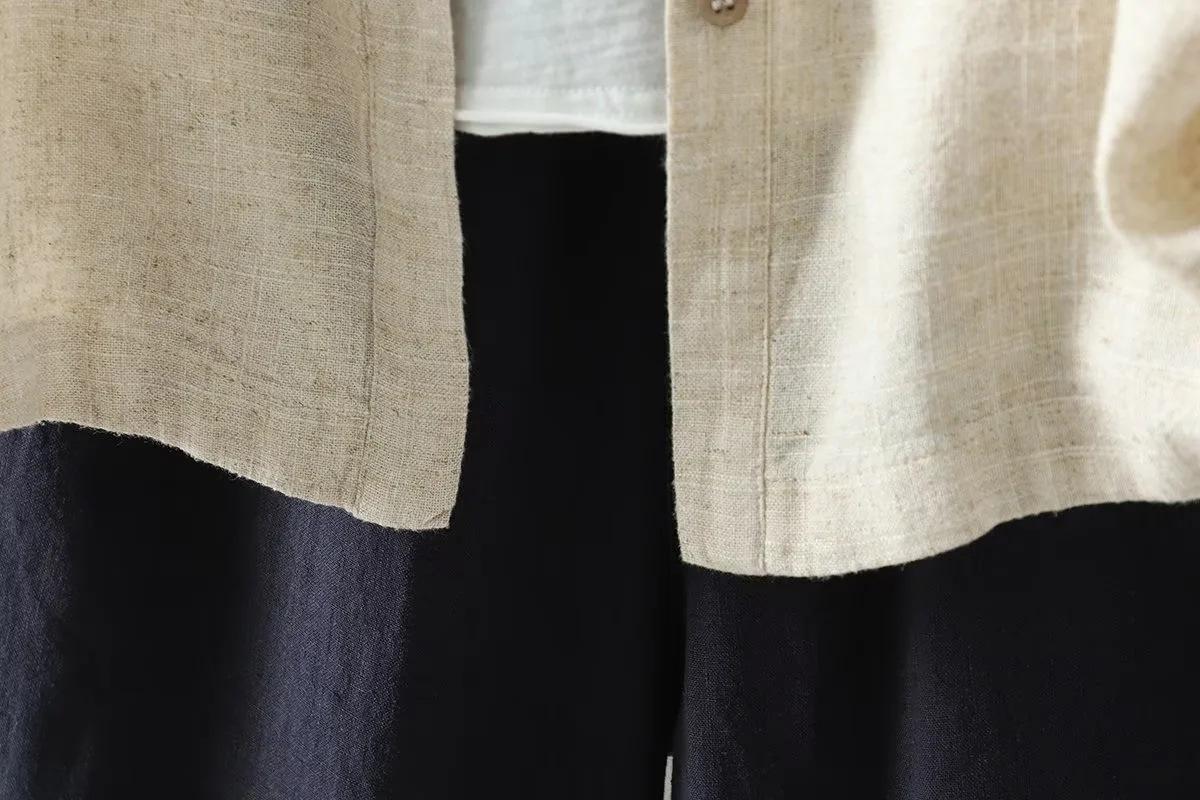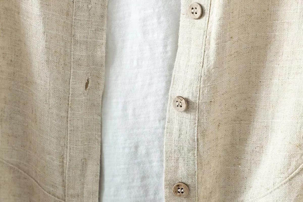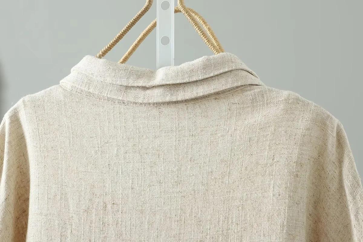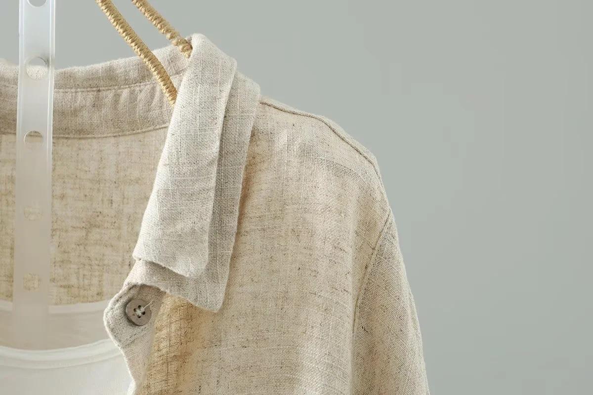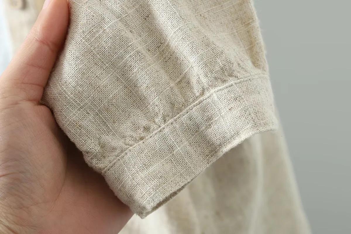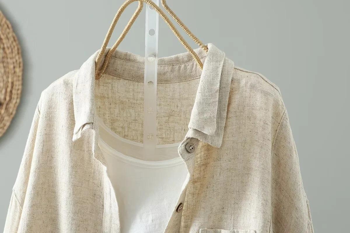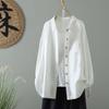 Camisa feminina de cânhamo, nova, de cor sólida, para primavera e verão de 2025, solta, de manga comprida, casual, com lapela artística, para mulheres