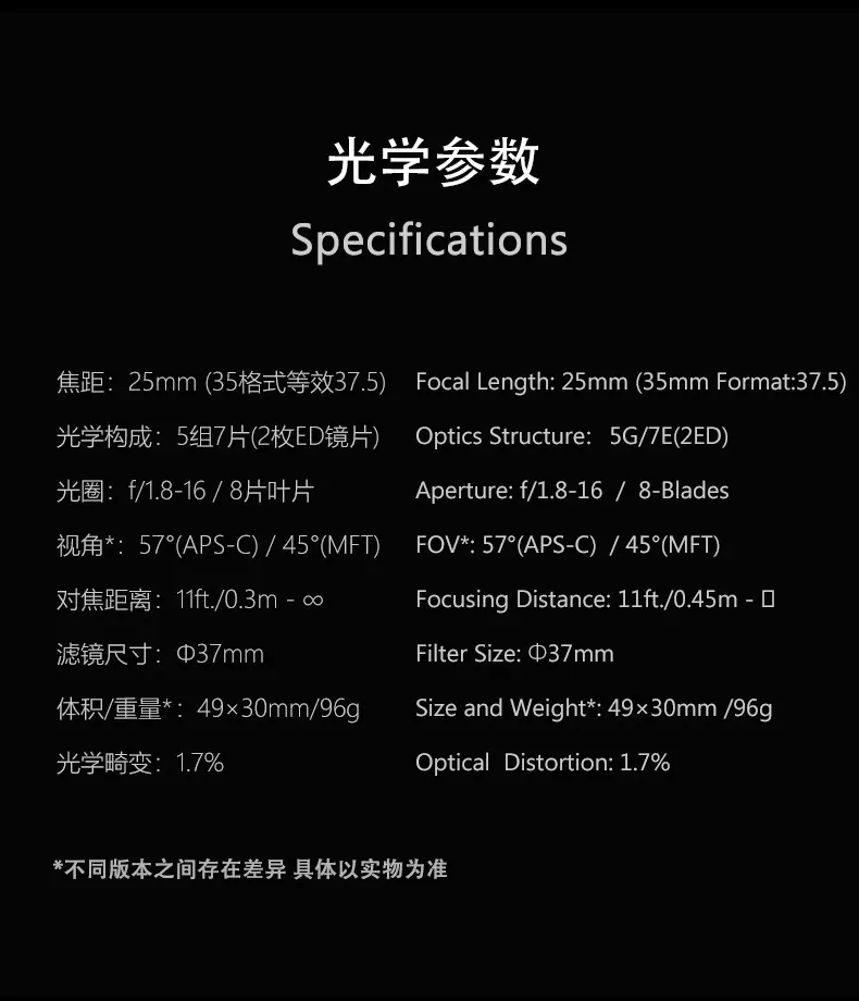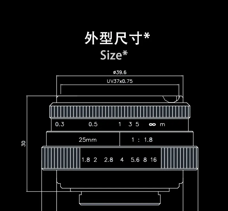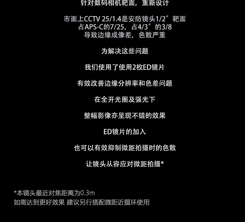 Lente TIASE de meio quadro 25mmF1.8 foco manual C-port grande angular micro lente de câmera única Sony Canon