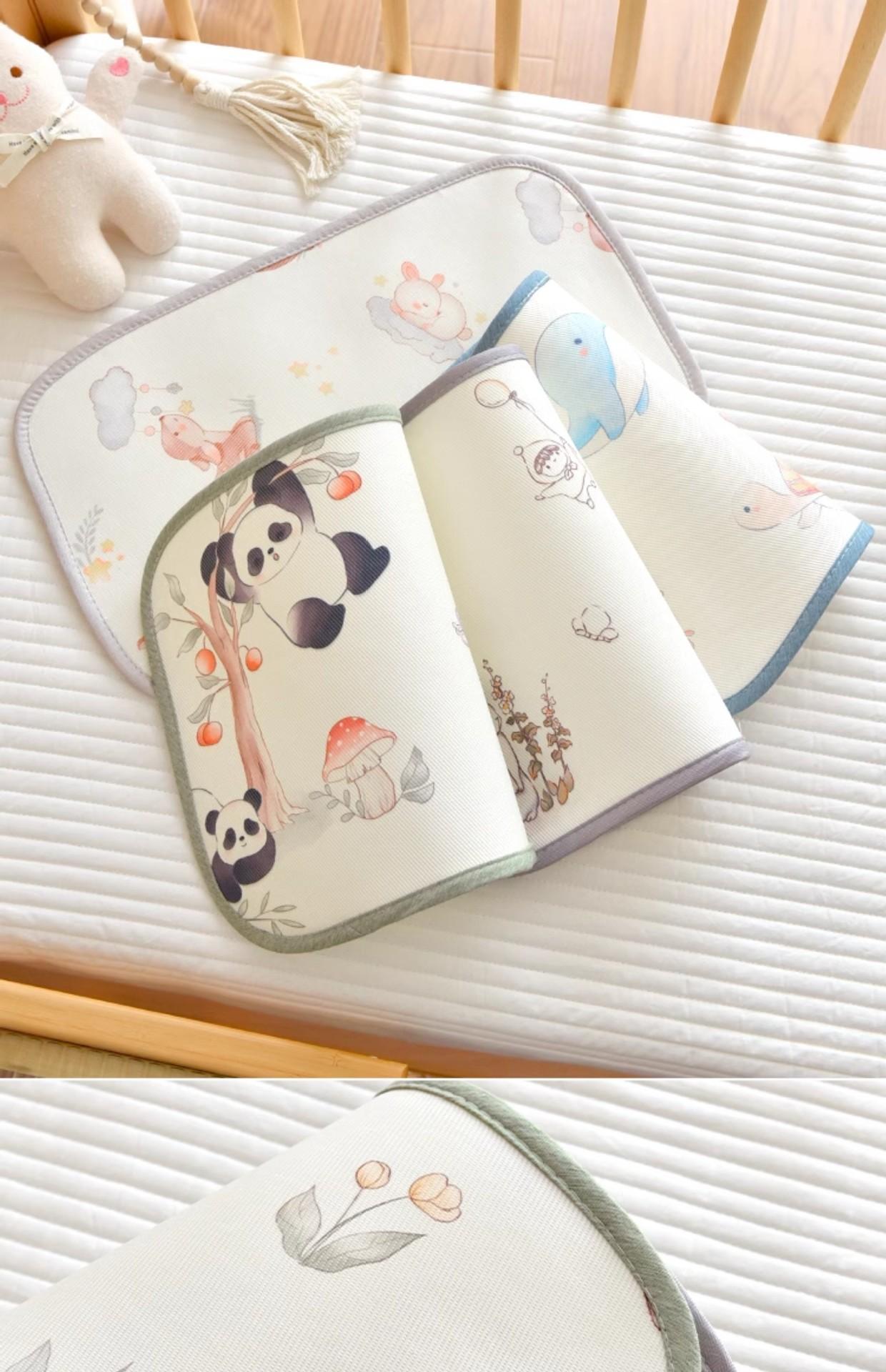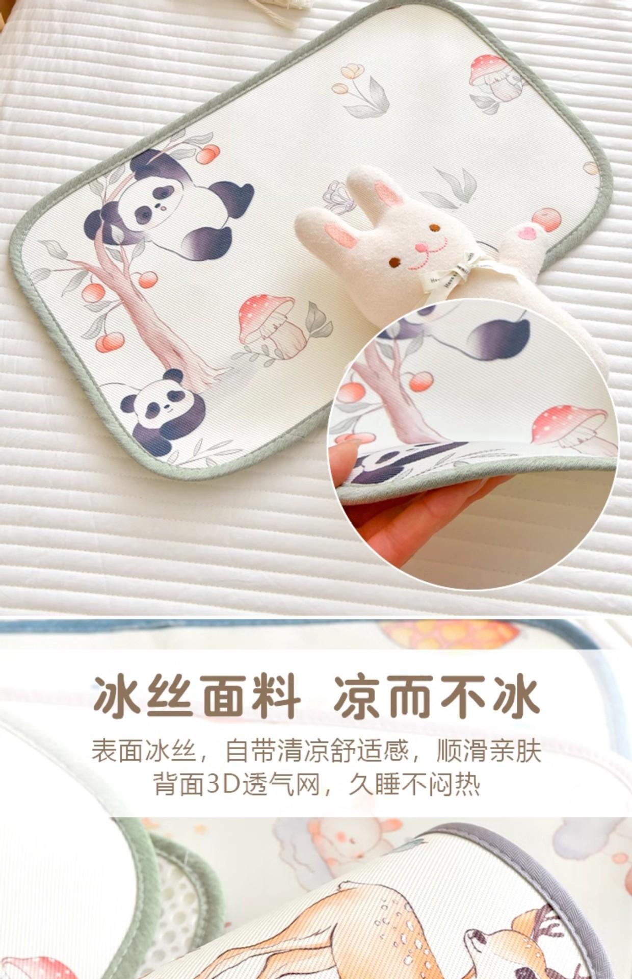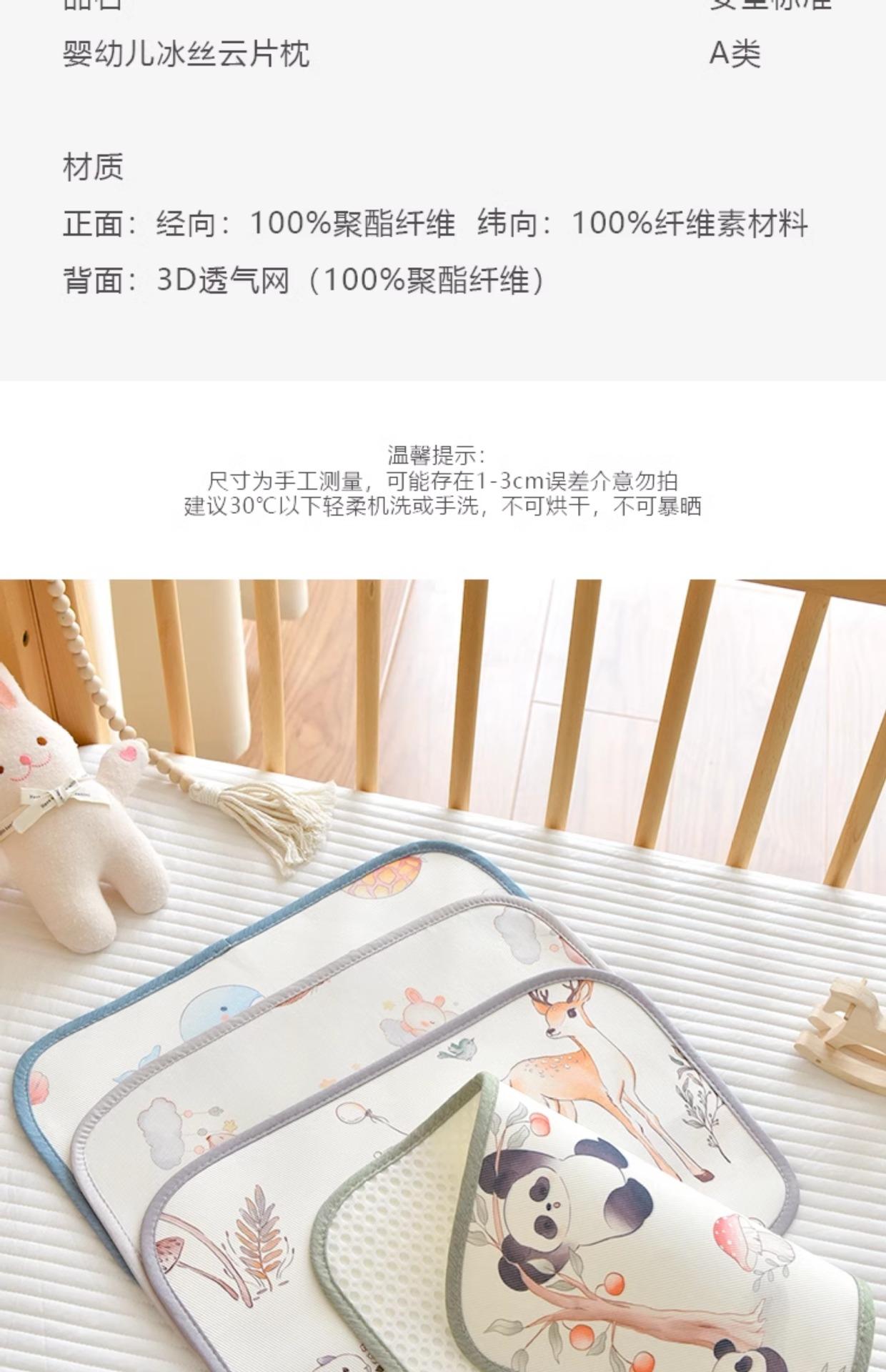 Almofada de seda de gelo para bebê A parte frontal desta almofada de nuvem é feita de fibra de poliéster na urdidura e fibra de celulose na trama O tecido é ligeiramente frio ao toque, mas não frio O travesseiro é respirável e confortável, muito adequado para uso no verão. Boa respirabilidade.