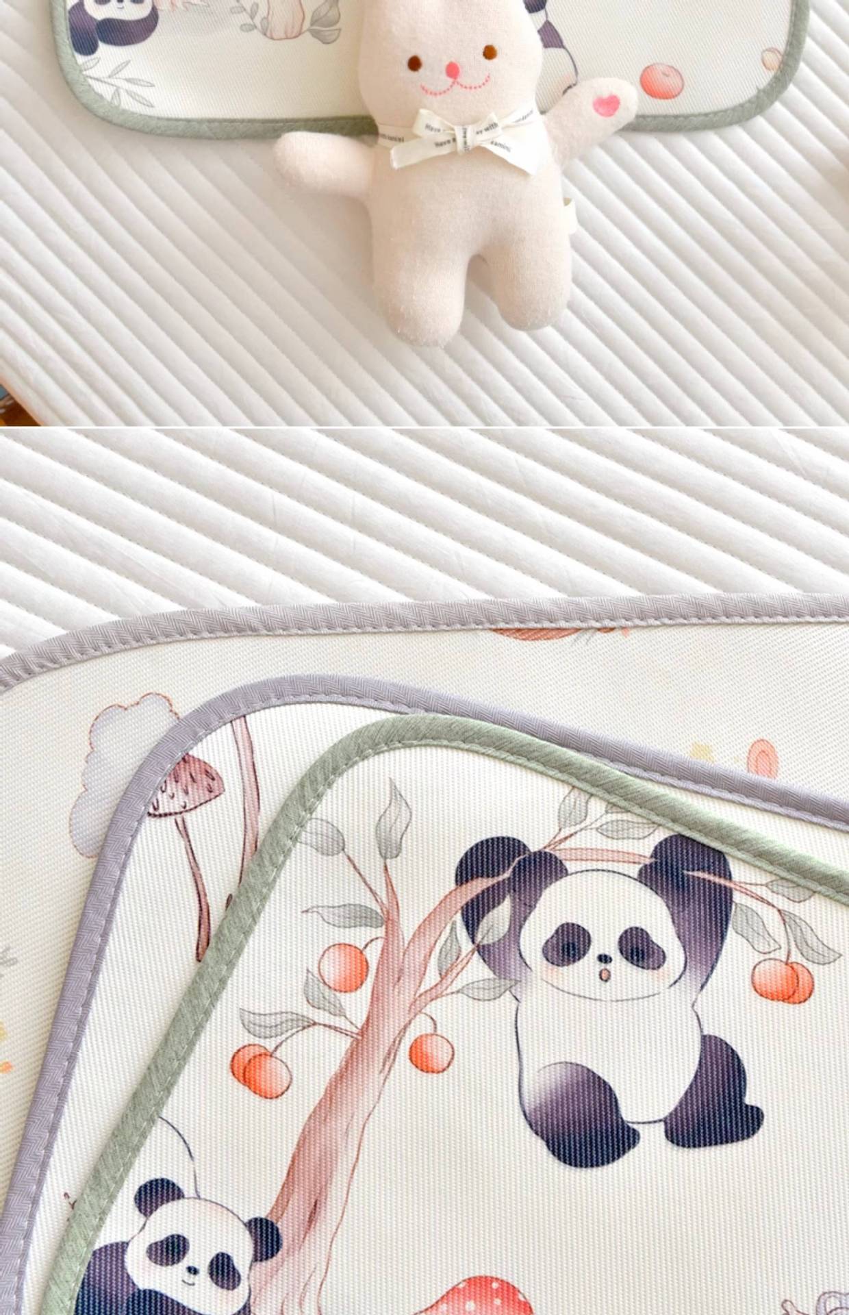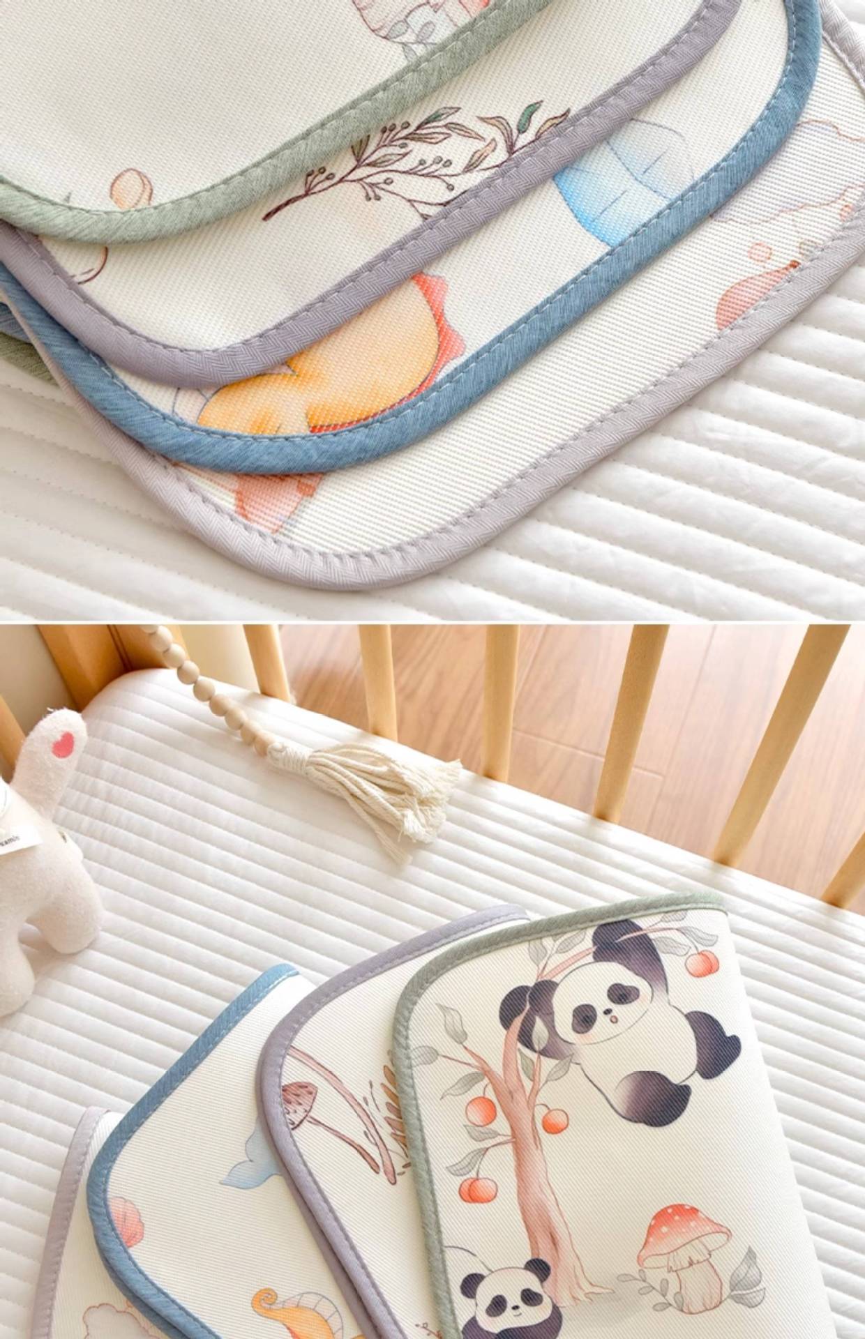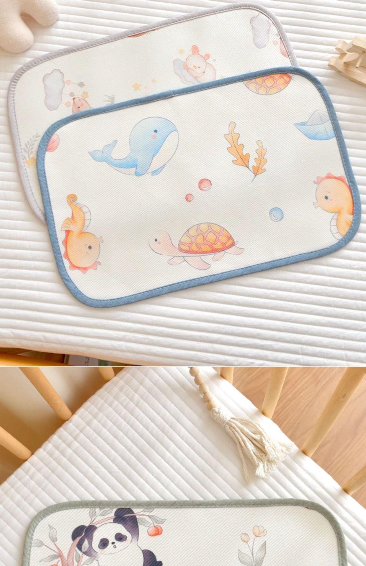 Almofada de seda de gelo para bebê A parte frontal desta almofada de nuvem é feita de fibra de poliéster na urdidura e fibra de celulose na trama O tecido é ligeiramente frio ao toque, mas não frio O travesseiro é respirável e confortável, muito adequado para uso no verão. Boa respirabilidade.