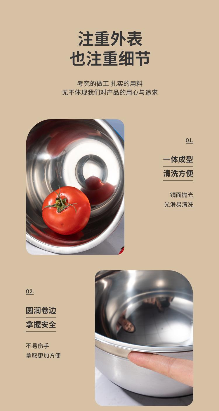 Bacia de Aço Inoxidável Fcm Bacia para Salada Bacia para Bater Ovos Tigela para Mistura Bacia de Cozinha Espessada e Bacia Tigela para Mistura Especial para Assar