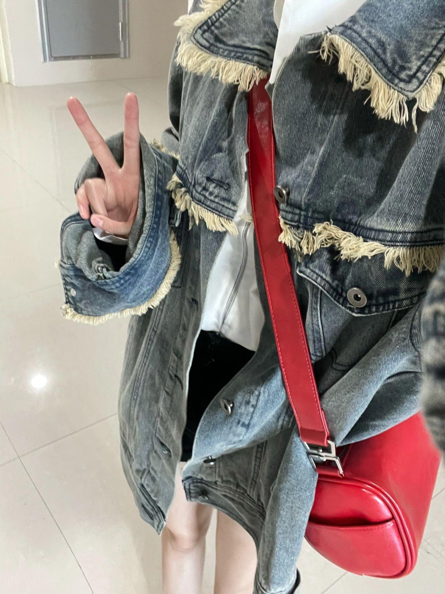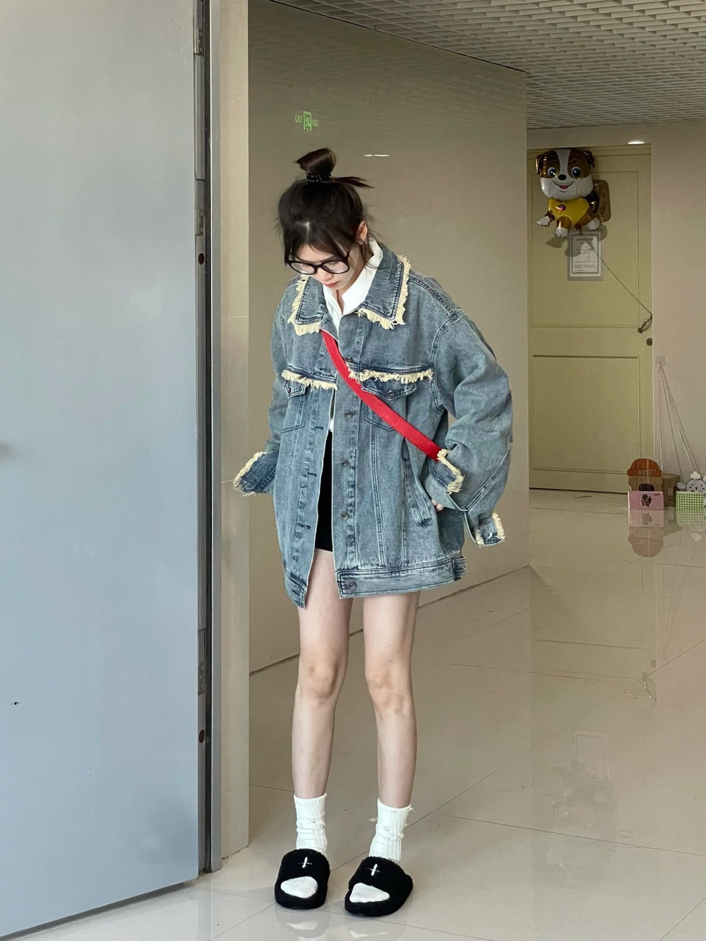 Cardigã Retrô Jaqueta Jeans para Mulheres 2025 Primavera & Outono Nova Jaqueta de Design Casual Nicho Americano Tendência