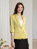 Jaqueta amarela de alta qualidade com manga de sete pontos e gola pequena, manga média feminina, primavera verão outono, nova blusa casual slim fit