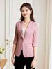 Jaqueta feminina rosa com gola pequena e manga de sete pontas, elegante, moderna, profissional, casual, para todos os tipos de corpo, slim fit