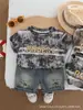 Roupa Infantil 2025 Roupa Infantil de Verão de Manga Curta Novo Conjunto de Duas Peças de Verão Coreano com Camiseta Estampada e Shorts Jeans Macios