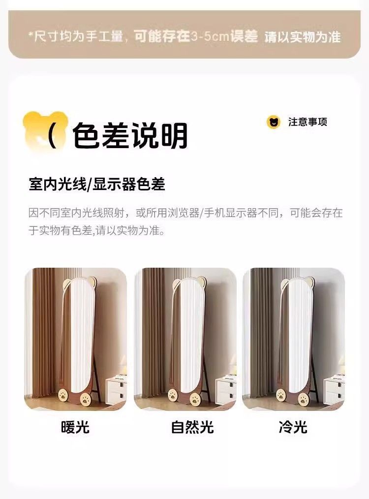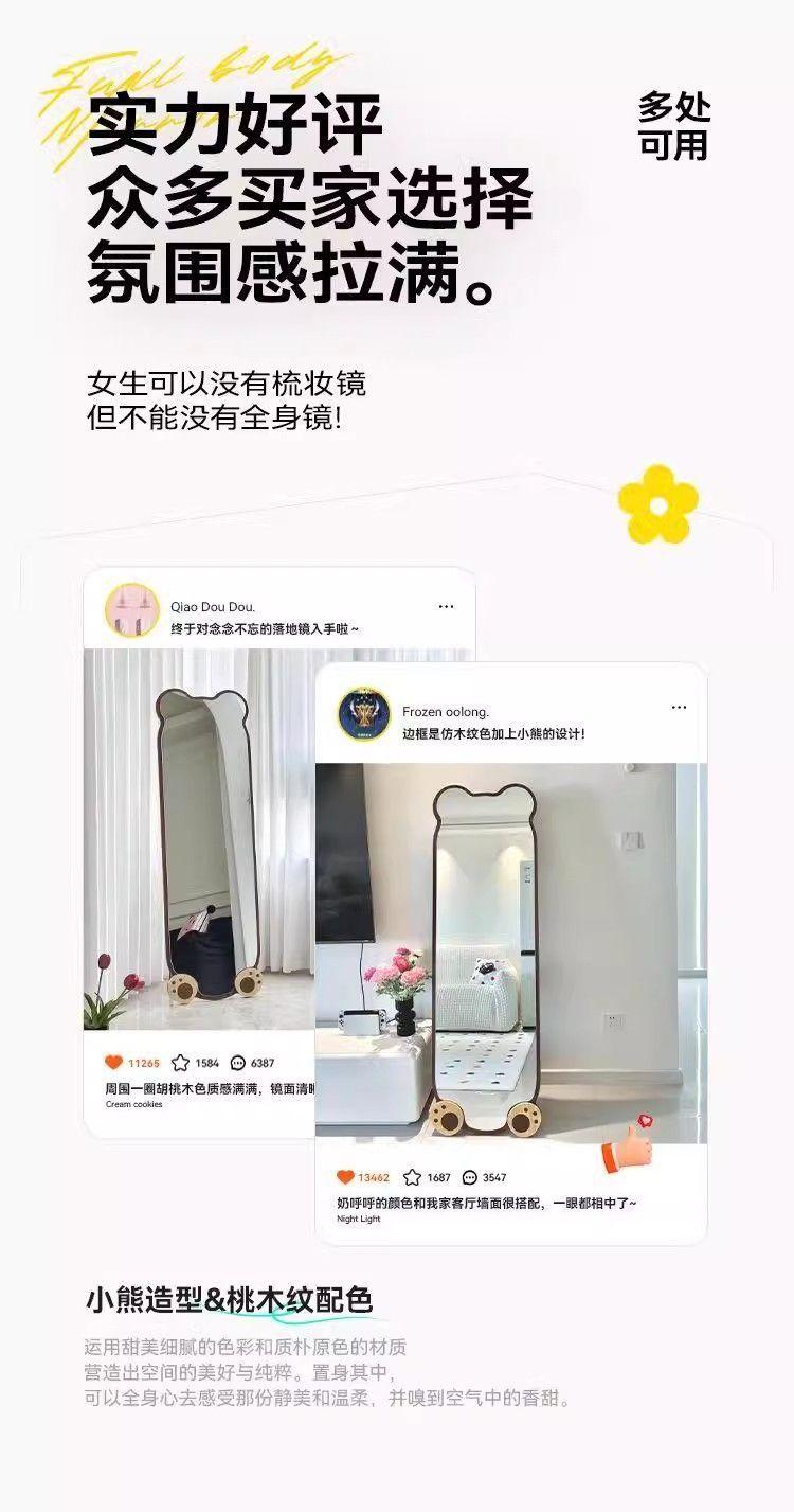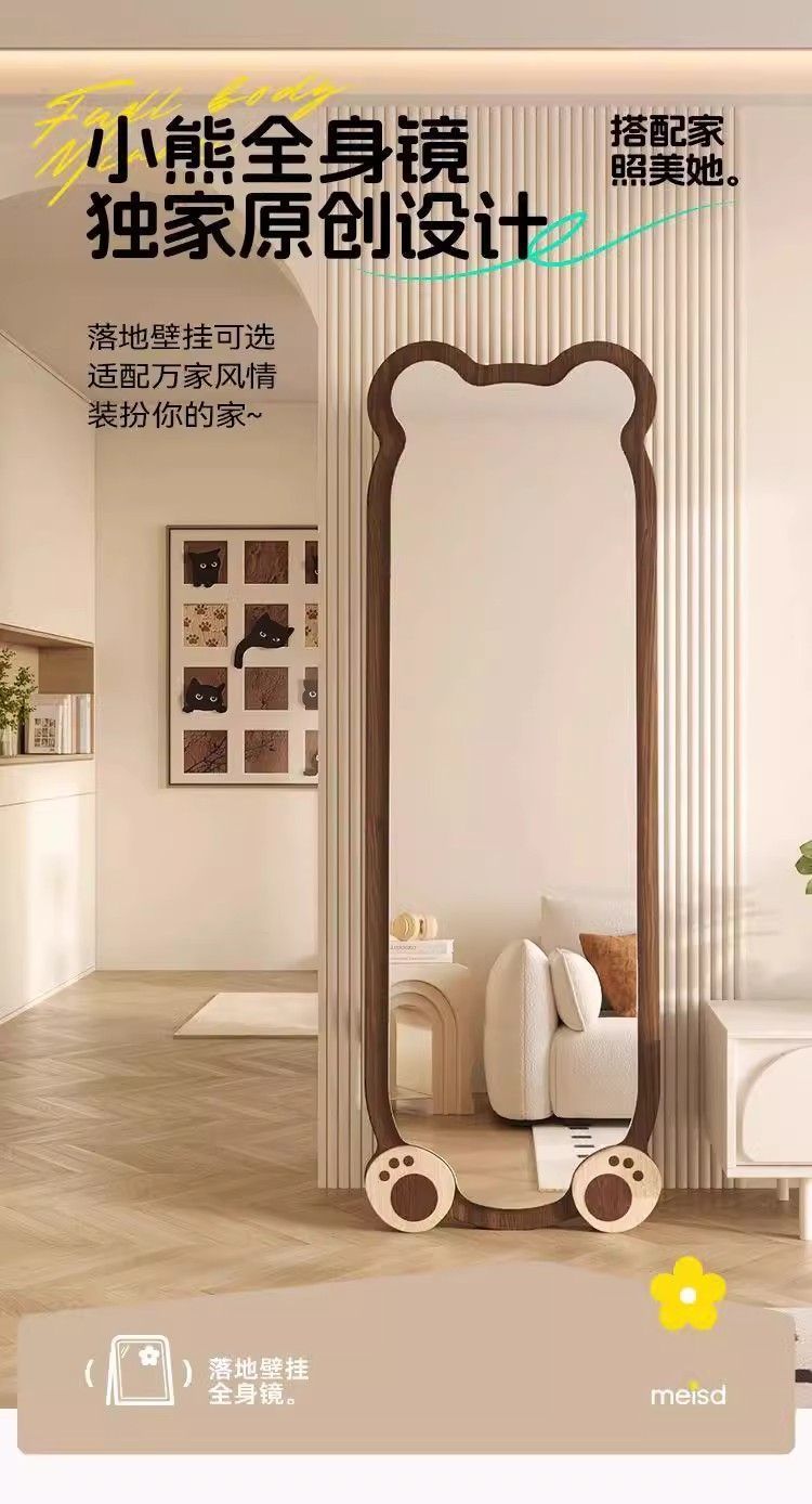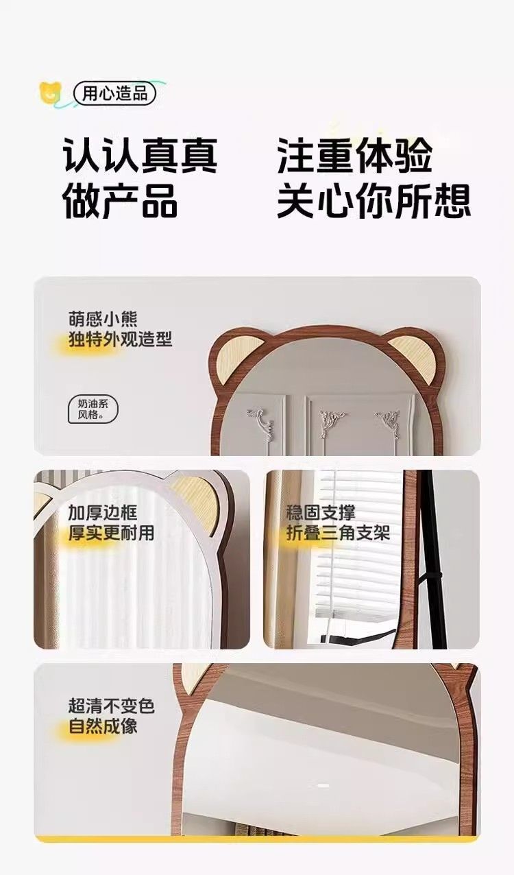 Espelho de corpo inteiro com vestido de urso, espelho de chão, novo espelho de loja de roupas estilo princesa, espelho de parede para casa