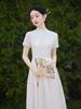 Vestido Cheongsam Branco Novo Chinoiserie Melhorado para Mulheres 2025 Verão Novo Retrô Tendência Nacional Elegante Cintura Saia Longa